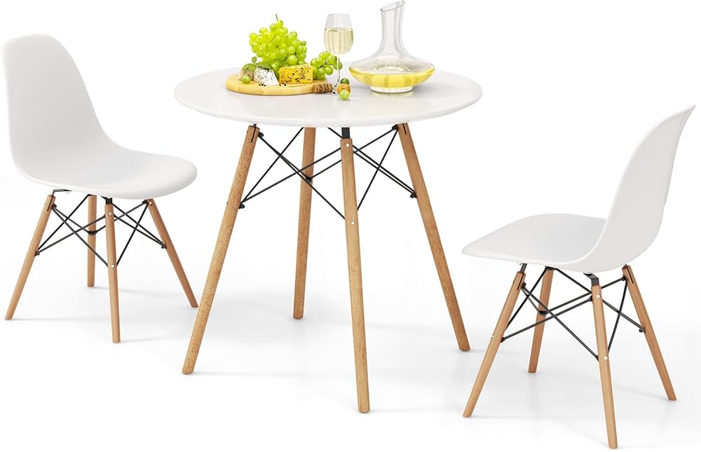 Giantex 3-Piece Dining Table Set, Modern Round 31.5" D Dining Table & 2 DSW Chairs W/Solid Wood Legs, Home Furniture Set for Small Spaces Dining Room Kitchen Restaurant, White