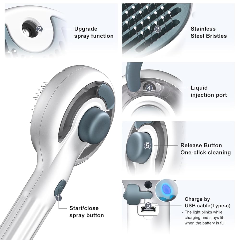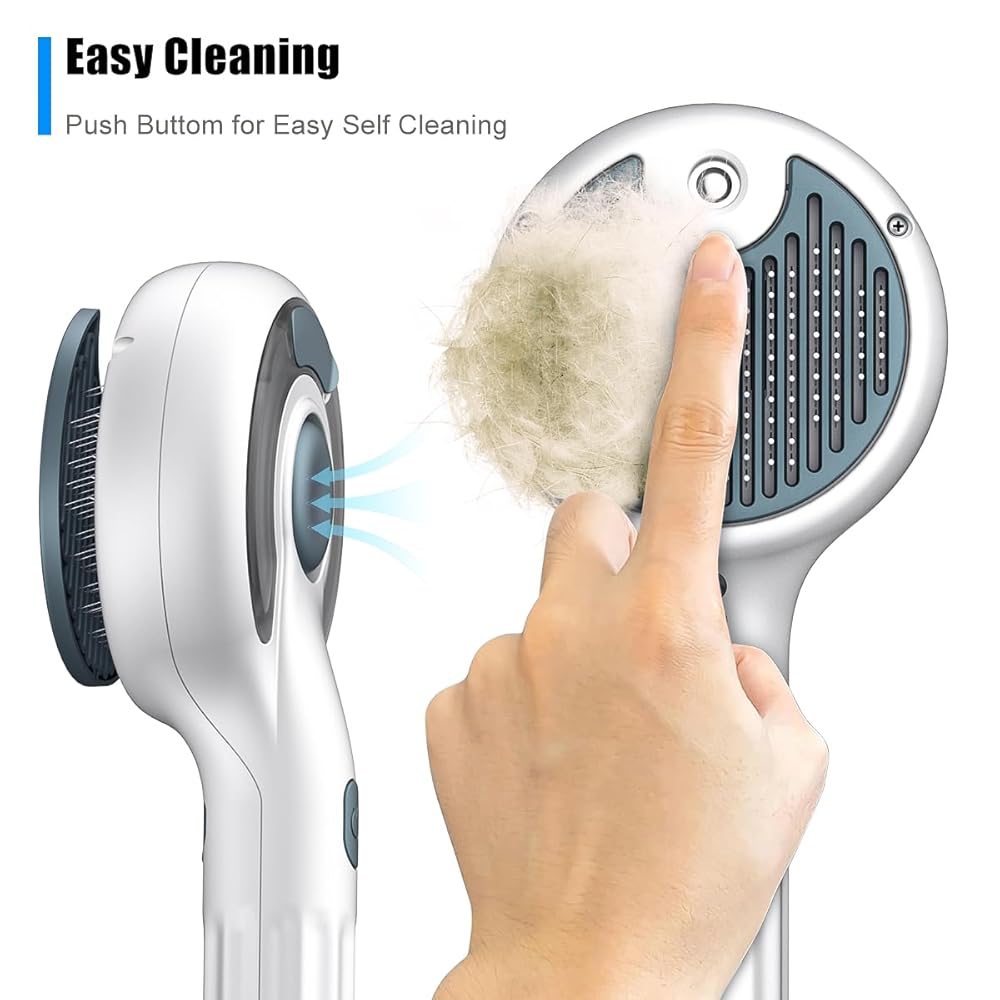 Gentle Water Mist for Static-Free Brushing: The integrated water spray feature emits a fine mist that reduces static and flyaways. Perfect for indoor cats who dislike traditional brushing, it softens fur and makes grooming more effective without scaring your pet.