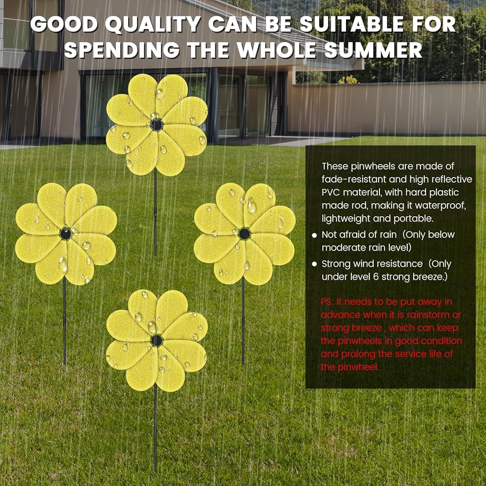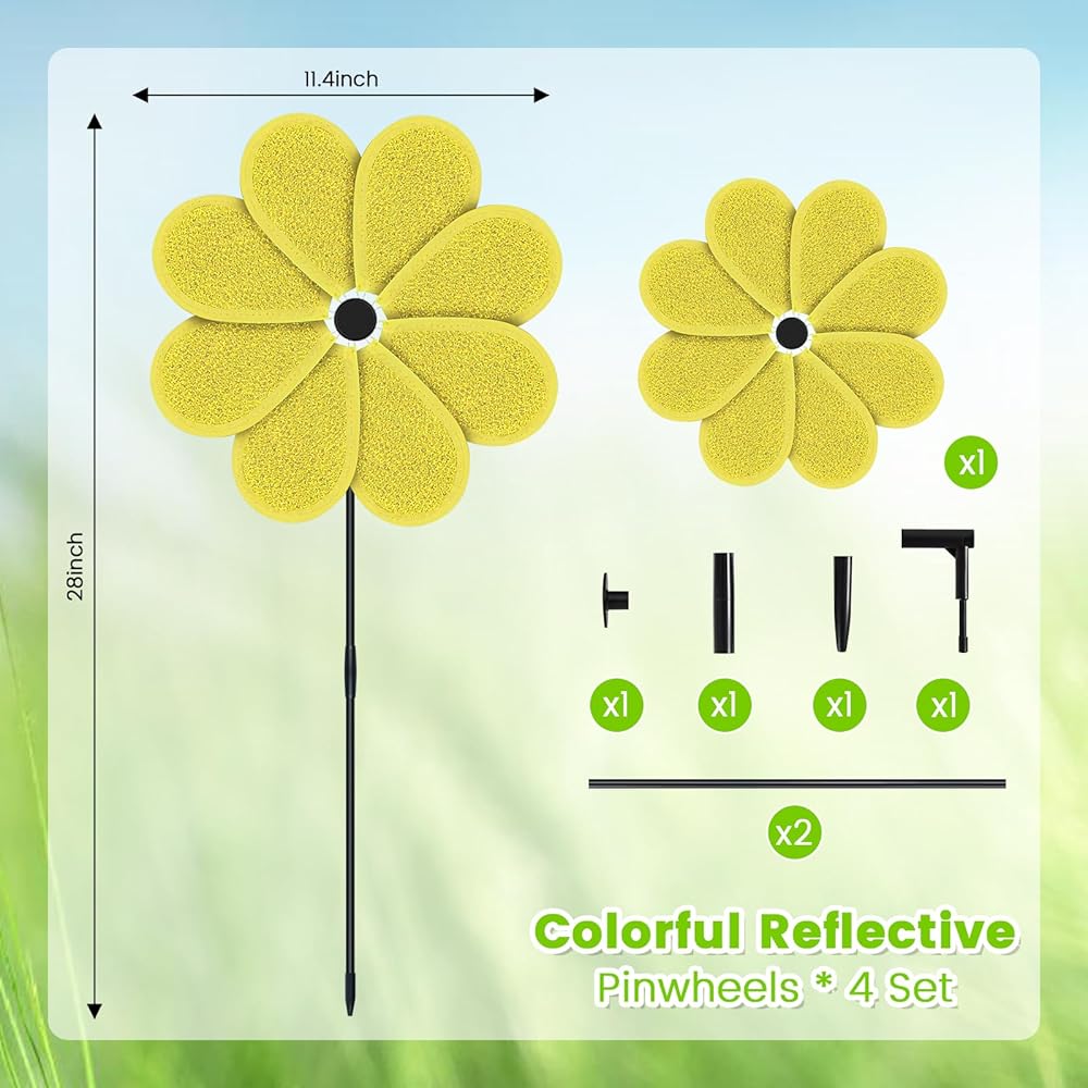 【Package】: You will receive 4 pack of Reflective Pinwheels. And assembly is simple: The windmill blades have already been assembled, all you need to do is assemble the windmill shaft and windmill pole.