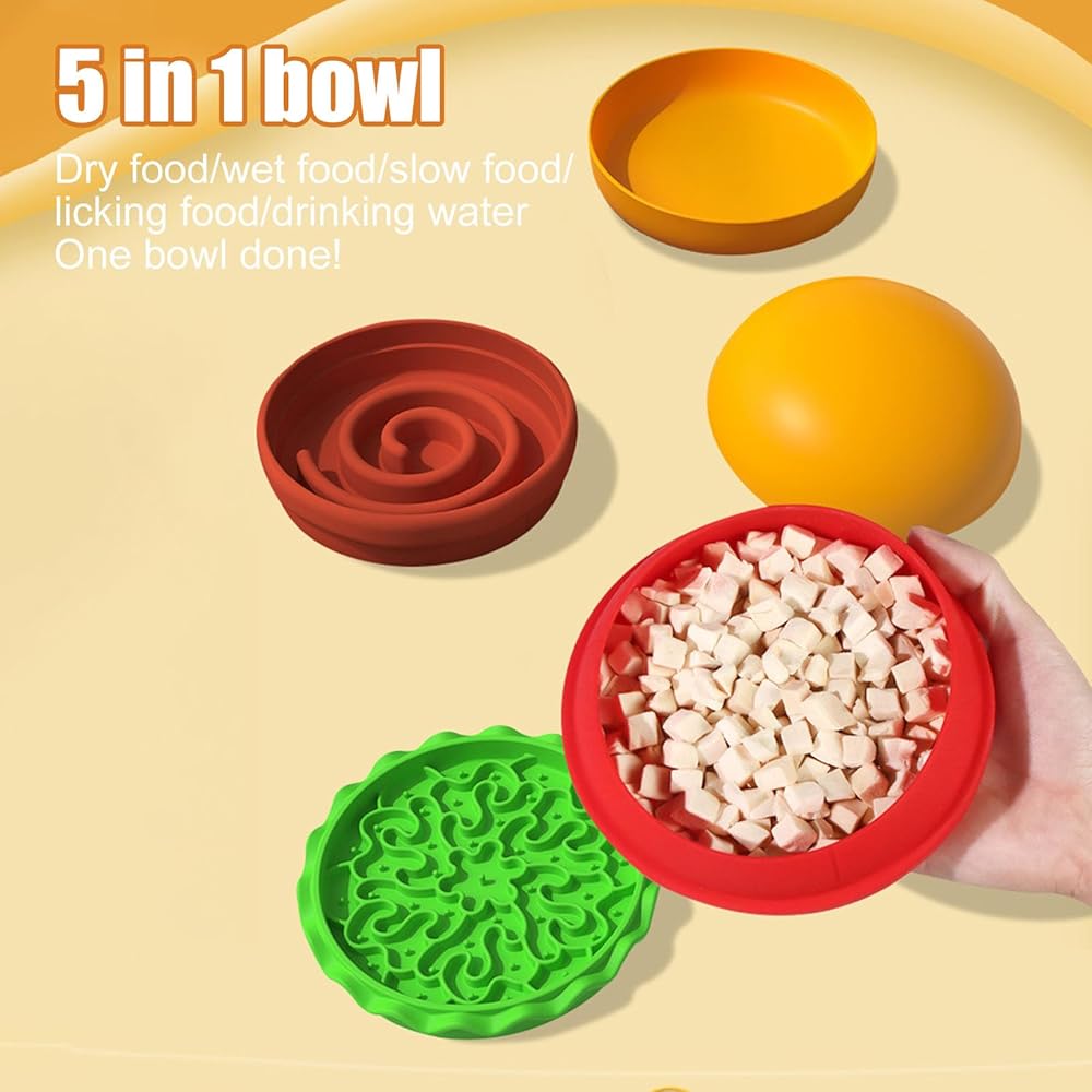 5-in-1 Stackable 'Hamburger' Design - Modular sections snap together for compact storage, doubles as a space-saving travel bowl for road trips or picnics with pets