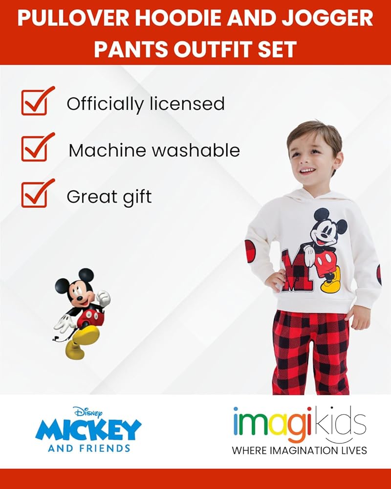 Officially licensed Disney Mickey Mouse toddler boys cute, comfy and stylish long sleeve graphic hooded sweatshirt and matching pants