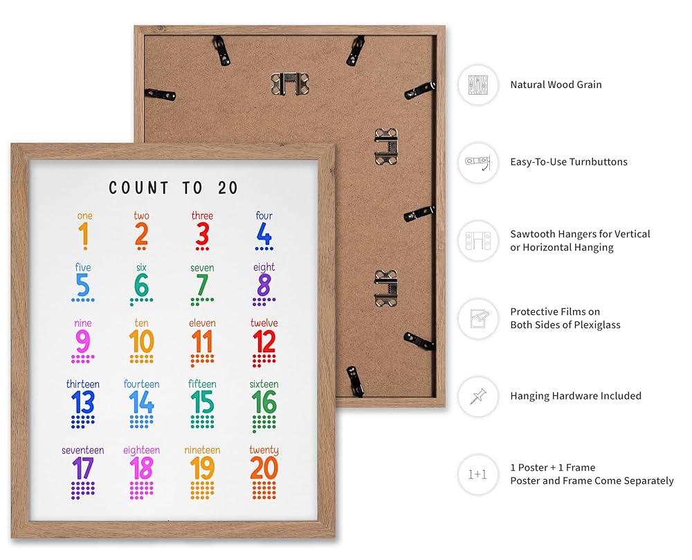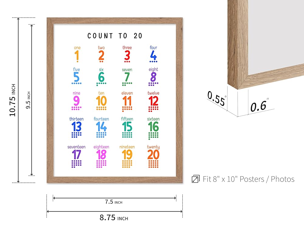 Monem Art Count To 20 Poster - Art Print - Numbers Artwork - Nursery Design - Educational Learning Material - Typography - Preschool Illustration - Kids Room or Classroom Decor - 8x10 Beige Framed