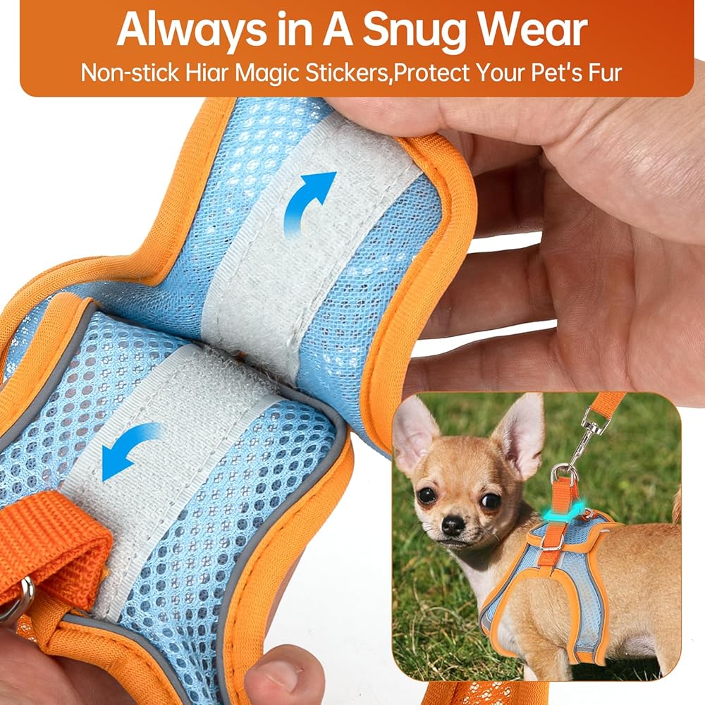 Ditch bulky collars! Our DOG chihuahua harness FOR CHIHUAHUA features a secure buckle & soft padding, making walks effortless. The matching LEASH adds control without straining your CHIHUAHUA's fragile neck.