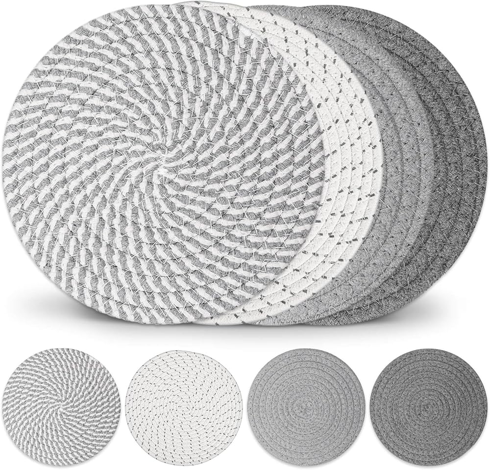 Trivets Set - You will receive 4 pieces of trivets for hot dishes. Measuring 10 inches in diameter and 0.3 inches thick, These hot pads for kitchen blend Boho and country farmhouse styles, perfect for your kitchen and dining table.