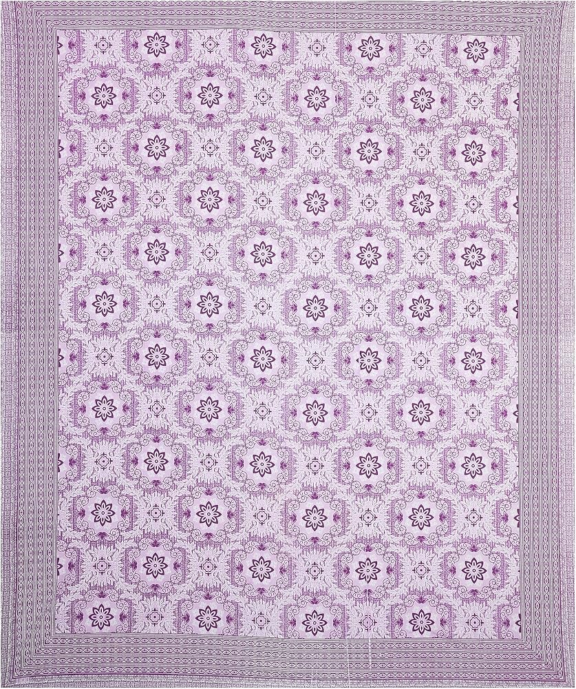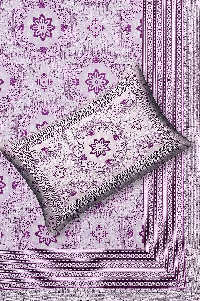 Marusthali Cotton New Bed Sheets Full Size Block Floral Printed Handmade Sanganeri Bedsheet Bedcover Bedspread Bed Cover with 2 Pillow Cases 100% Cotton Bedsheets 90 X 108 inches (Purple)