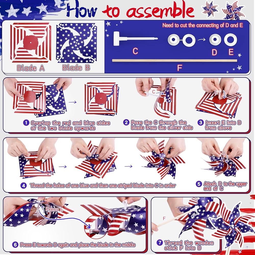 Versatile Use: Includes simple instructions for quick setup—just attach the pinwheel to the stick and plant it in your lawn, garden, or flower pots. Great for backyard events, parades, or as patriotic decorations for loved ones who love the USA