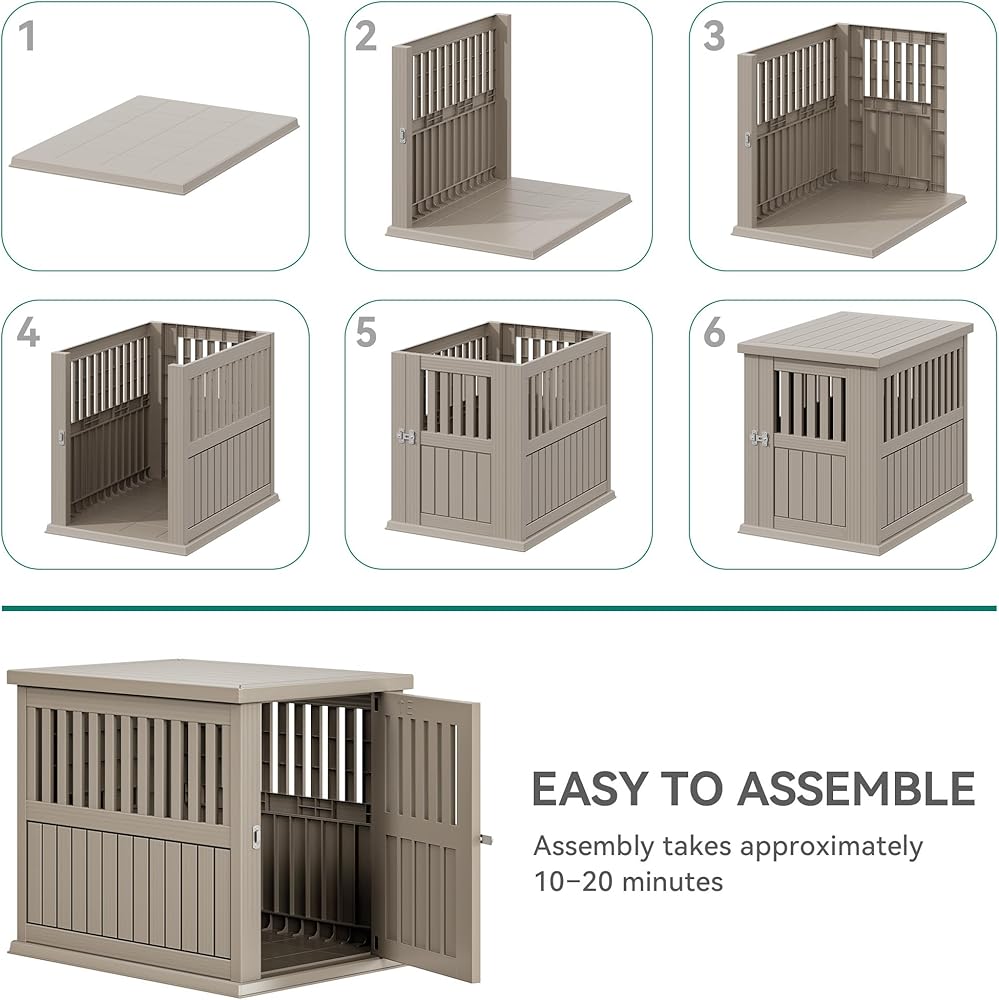 Simple Setup & Versatile Use: Assembly is quick and easy-just snap the panels together and fasten a few screws; Whether as a cozy indoor retreat or a functional outdoor dog house, this plastic dog crate blends practicality with style