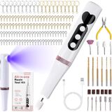 Versatile Rotary Tool: This all-in-one kit includes an electric resin drill & polishing tool with UV light, 6 sanding bits, 4 polishing heads, 6 drill bits, 1 needle nose pliers, 20 key ring with chains and 100pcs screw eye pins. Great for drilling holes, polishing edges, sanding molds, DIY jewelry, keyrings, and curing resin art & manicure with the UV light