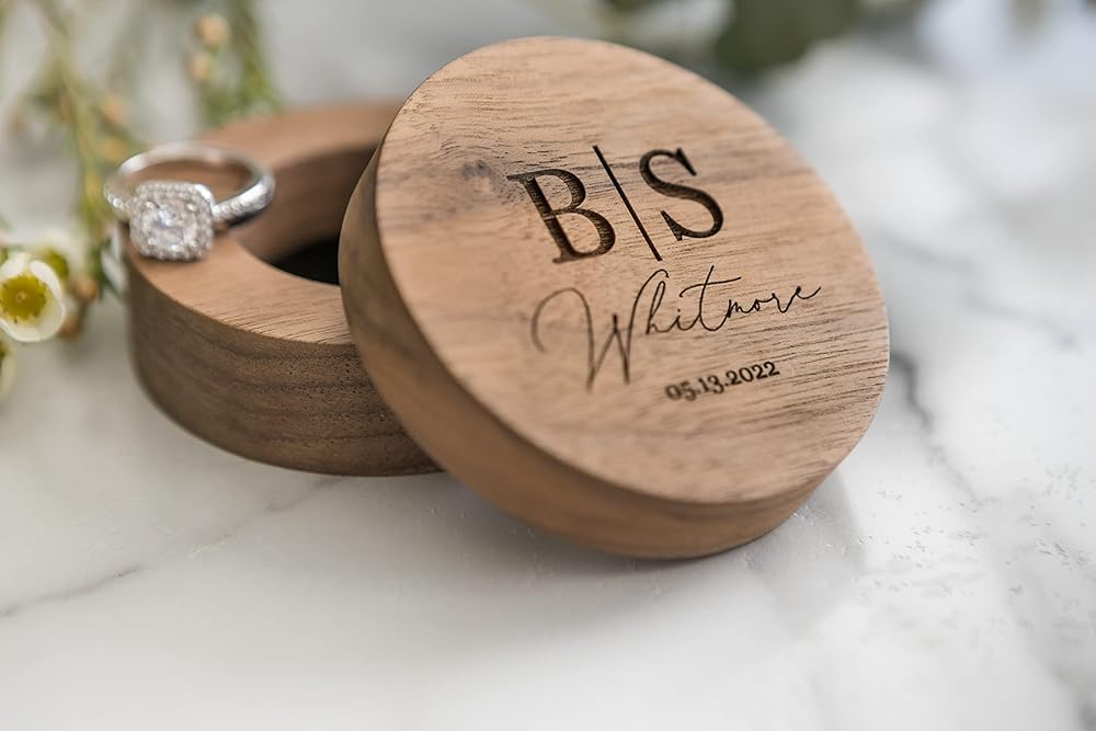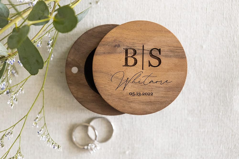 This custom laser engraved wedding ring box adds a beautiful personalized touch to your wedding day. This keepsake is a perfect way to make your engagement, wedding, or anniversary day a little more special