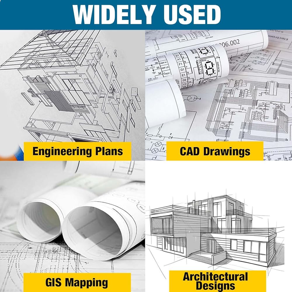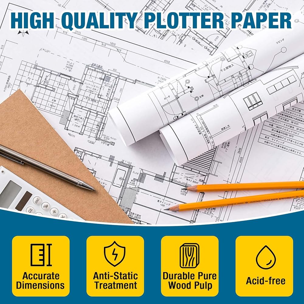 ✅【Plotter Compatibility & Wide Applications】Engineered for seamless integration with plotters and large-format inkjet printers, this CAD plotter paper rolls are the reliable choice for professionals in engineering, architecture, and design. Suitable for various fields like architectural design, civil engineering, and promotional advertising. Whether you're creating architectural plans, engineering schematics, or detailed graphic designs, this paper delivers exceptional performance for line drawing and CAD plots. Optimized for inkjet printers, it ensures smooth operation and compatibility, this ensures seamless integration into existing printing setups for enhanced efficiency.