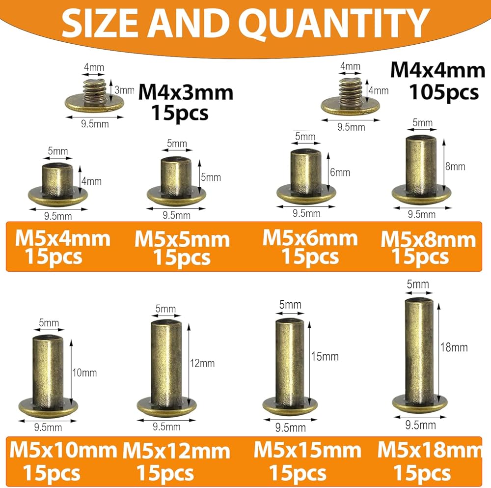 120sets Chicago Screws Kit, 8 Sizes Screw Rivets Bronze Chicago Binding Screws for DIY Repair Leather Craft Belt Bag Shoes Purse Bookbinding (M5*4,5,6,8,10,12,15,18) (Bronze)