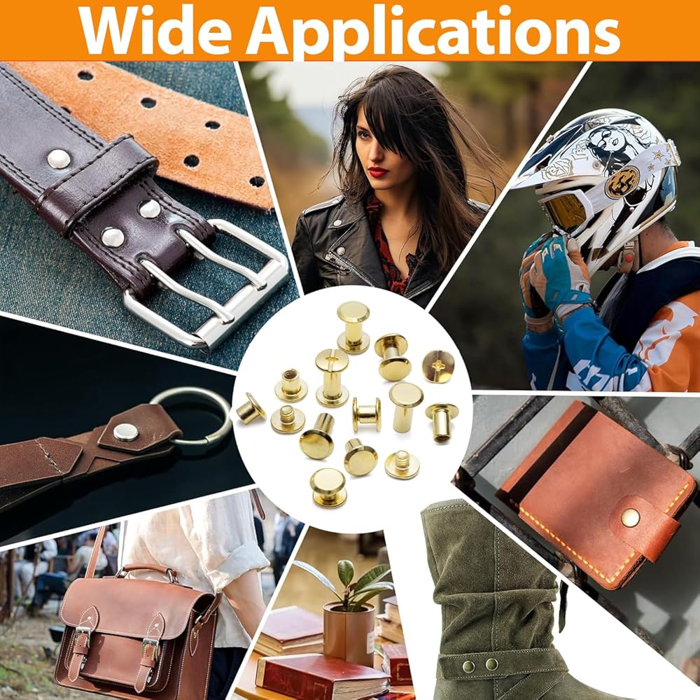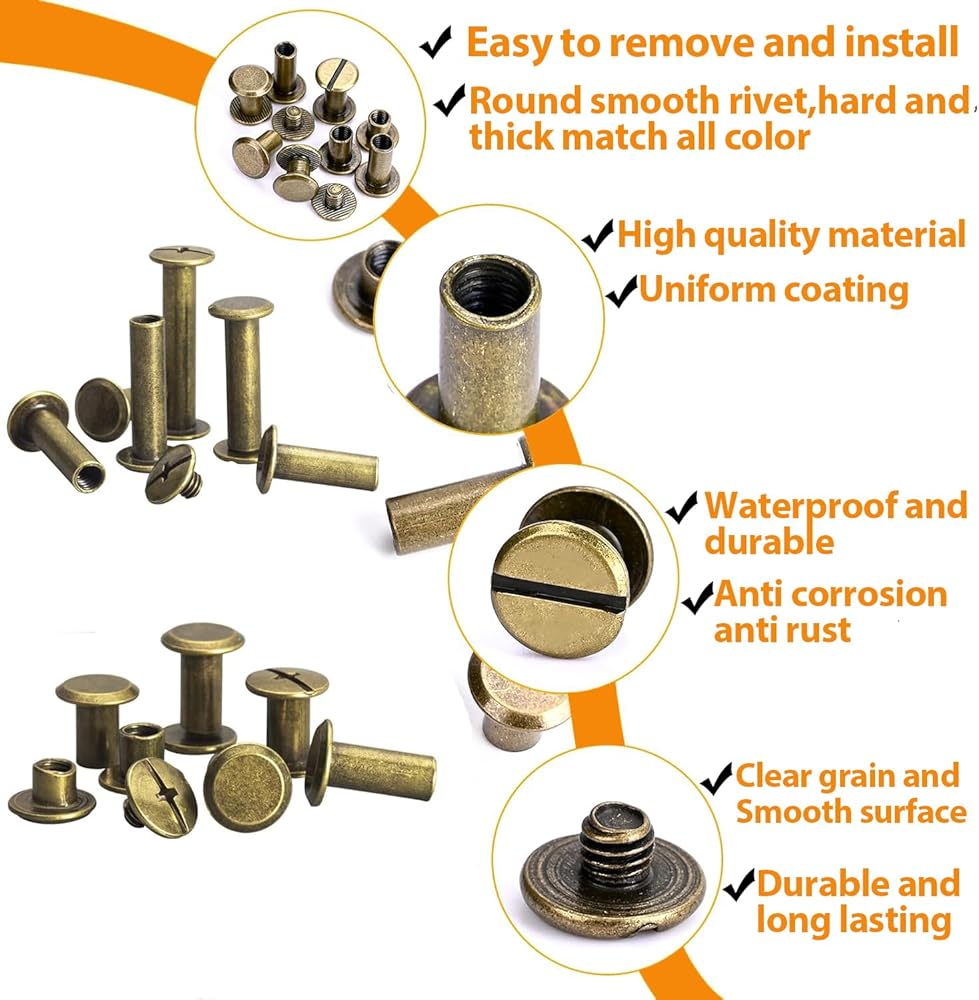 ➤Wide Application:Leather rivet kit used in DIY leather craft and bookbinding: These leather screws are perfect for adding ornaments to the DIY handicraft decoration.Especially suitable for various leather crafts such as belts, handbags, leather shoes, binding documents, books, photo albums, DIY crafts. You can use it as you like.
