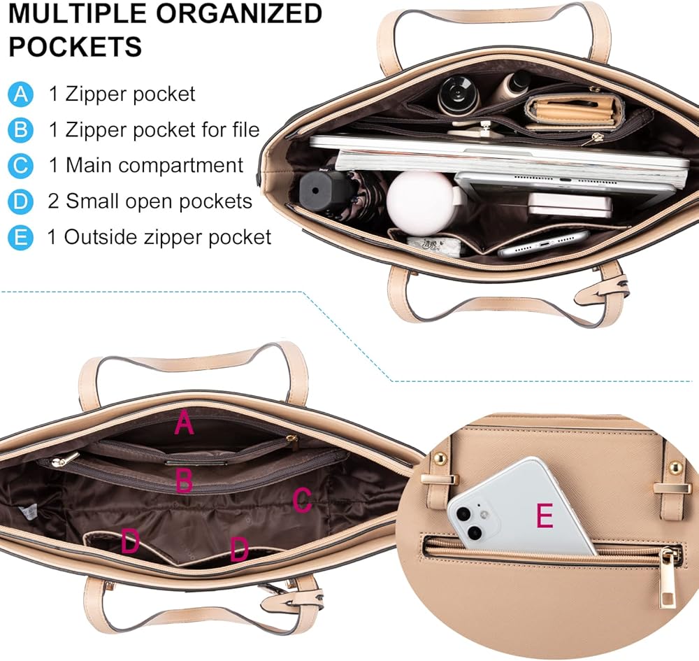【Size Information】: 15"(12")L 10.5"H 5"D, weight: 1.39 lb. Come with dustproof bag. The tote purse for women is big enough to keep 13" laptop💻.