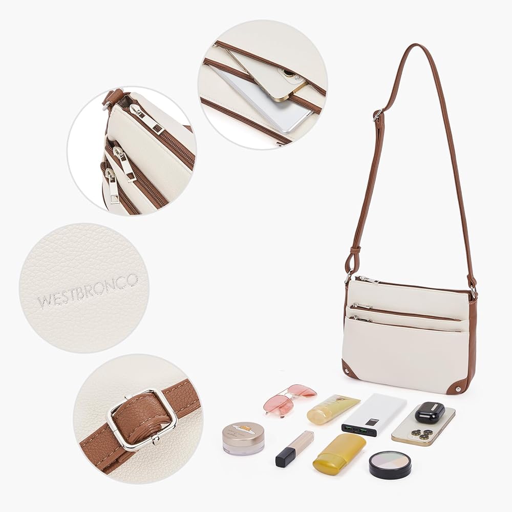 [COMPARTMENTS] The main zipper pocket of the crossbody purse includes serveral compartments to stay organized! Two inside zipper pockets will keep your belongings safely.