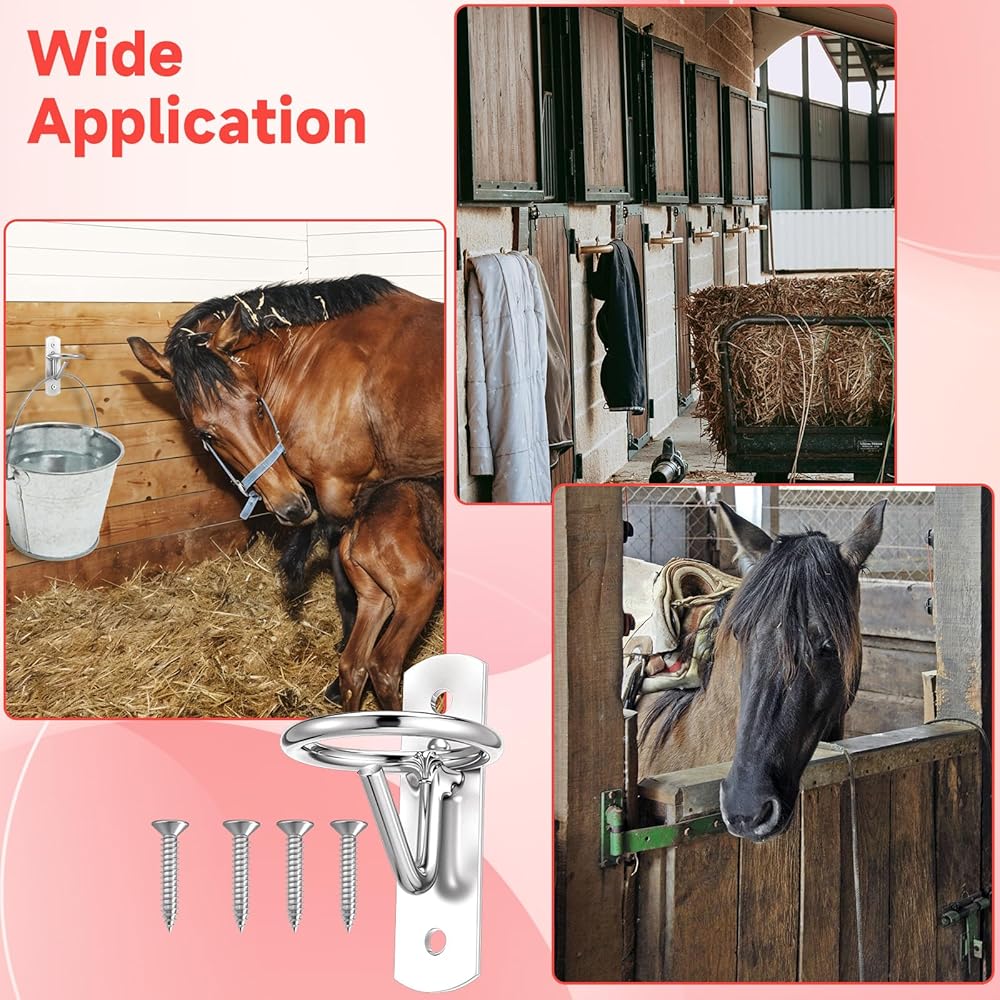 【Multi-Purpose Use】These stable bucket hooks are not limited to hanging water or feed buckets for horses. They can also be utilized to secure gate chains and latches, aiding in the efficient closure of gates and stalls. Additionally, they are suitable for safely tethering larger animals like goats and other livestock.
