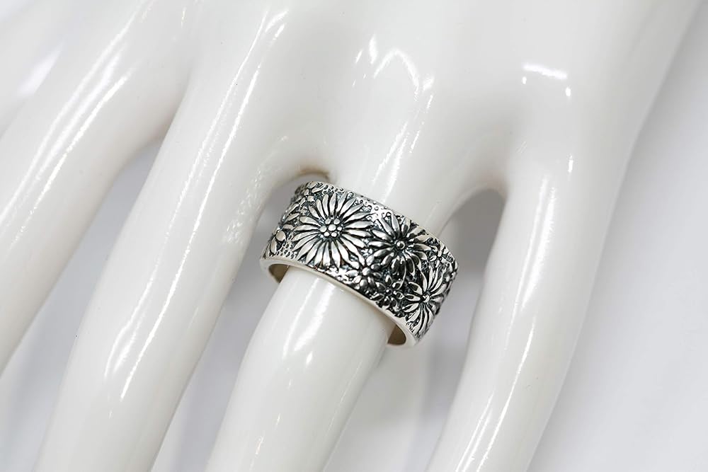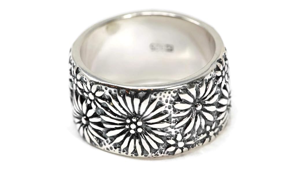 This Vine pattern band is made of 925 Sterling Silver. The band is 3.5mm wide. Polished Silver shown in last image. Ring Sizer included. Shipped in gift box.