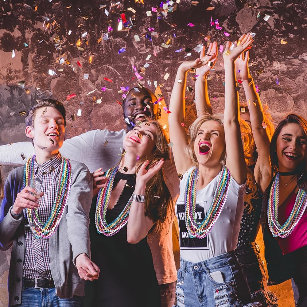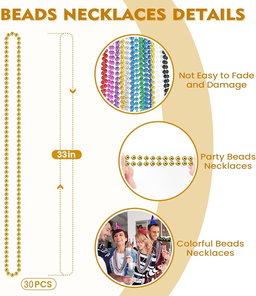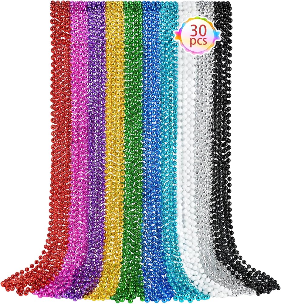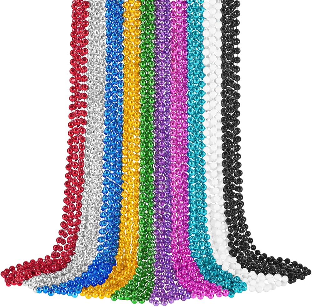 Mardi Gras Beads: The white Mardi Gras beads, properly suitable for Mardi Gras, Christmas, New Year's Even Day, 4th of July Independence Day, Veterans Day, dress up party and more. White party beads can meet all your needs