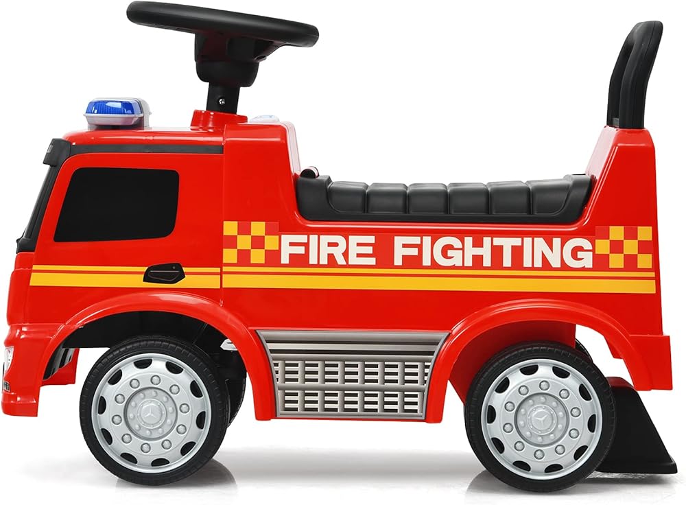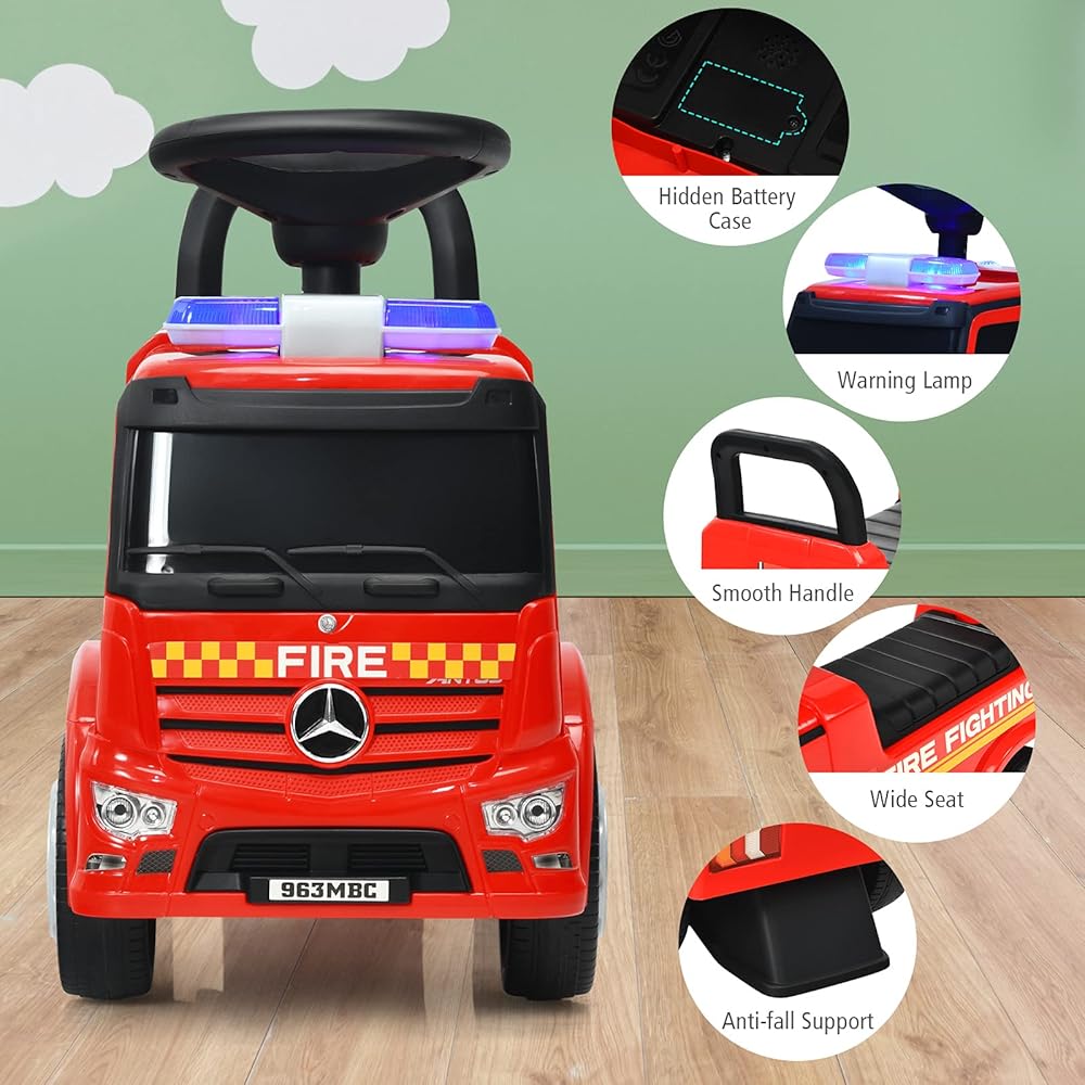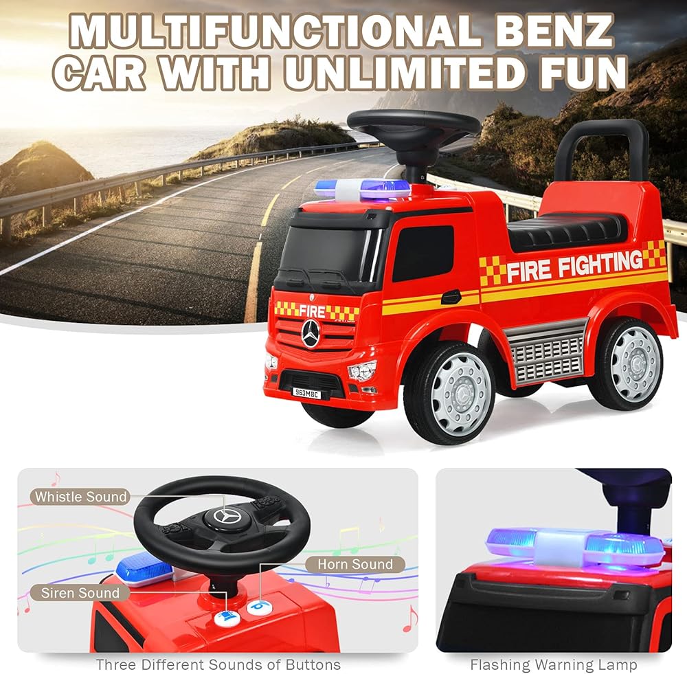 HONEY JOY Ride On Push Car, Licensed Mercedes Benz Push Cars for Toddlers w/Horn, Music, Lights, Under Seat Storage, Foot-to-Floor Ride On Fire Truck Toy for Kids Boys Girls 1-3, Red