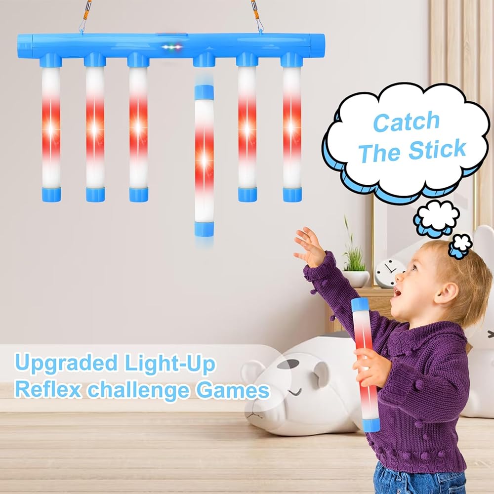 OCES Reflex Stick Game, Reflex Light-Up Sticks Reaction Training Hand Speed Challenge Game, Upgrade Hand Eye Coordination Training Toy Remote Control 3 Adjustable Speed (Light-Up Blue)