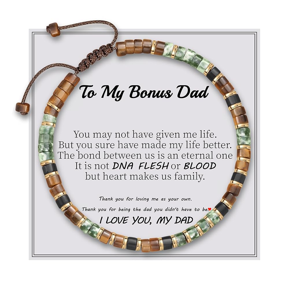 Sistble Bonus Dad Gifts, Gifts for Step Dad Tiger Eye Beaded Bracelets Handmade Jasper Natural Stone Bracelet Christmas Birthday Gift Ideas from Step Son Daughter