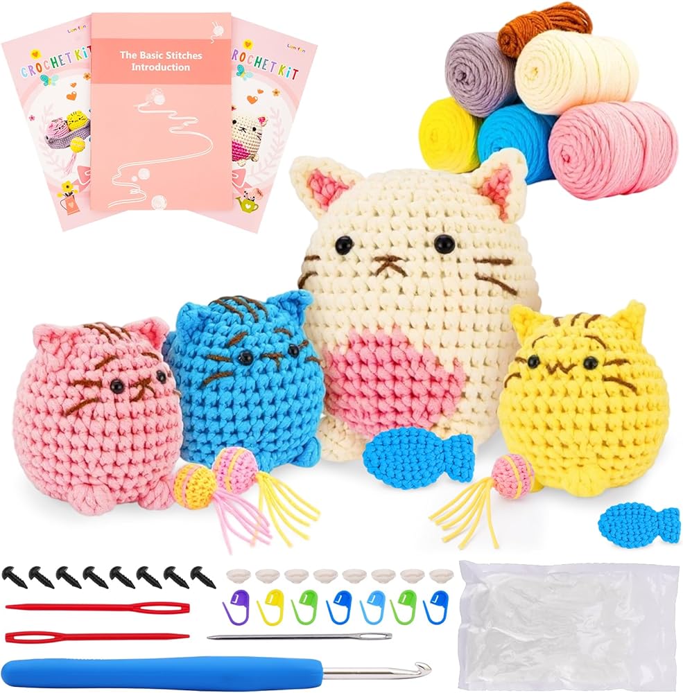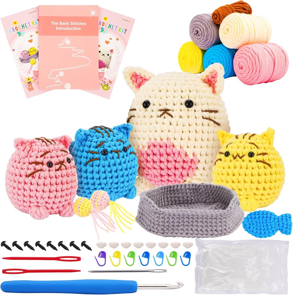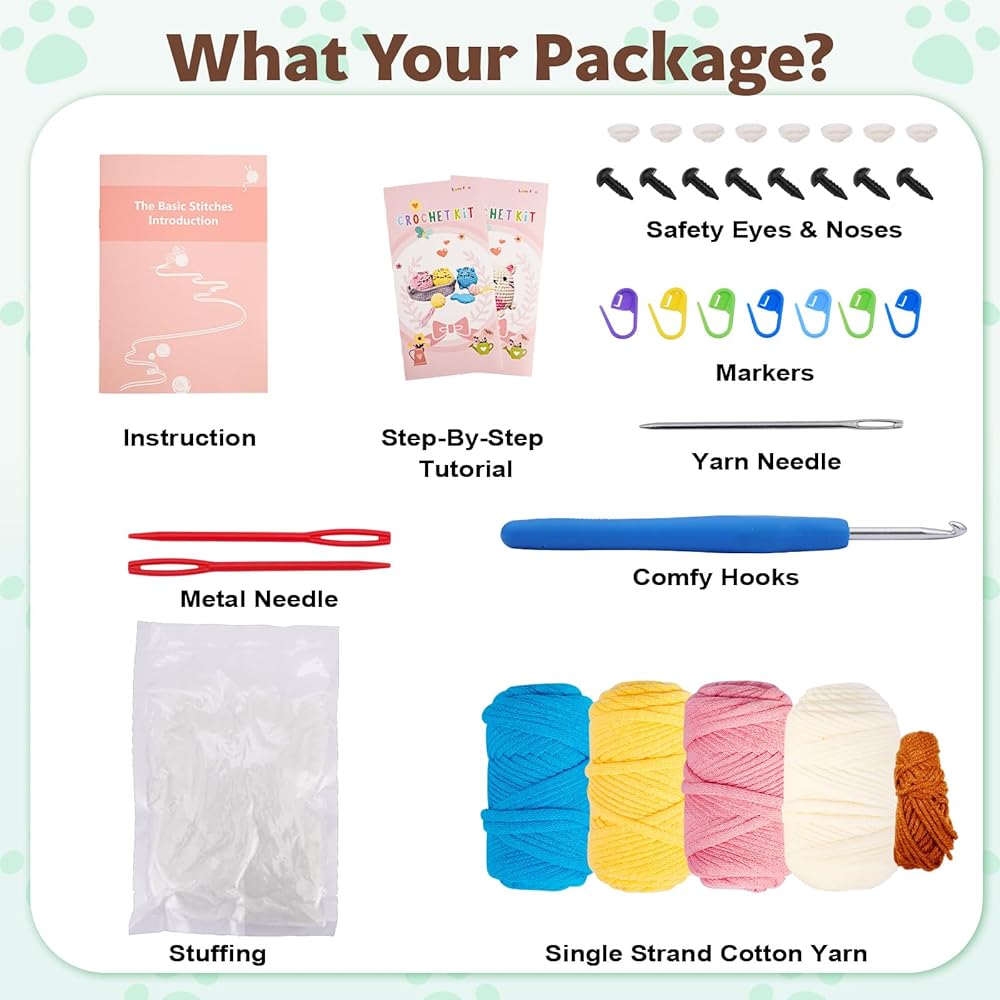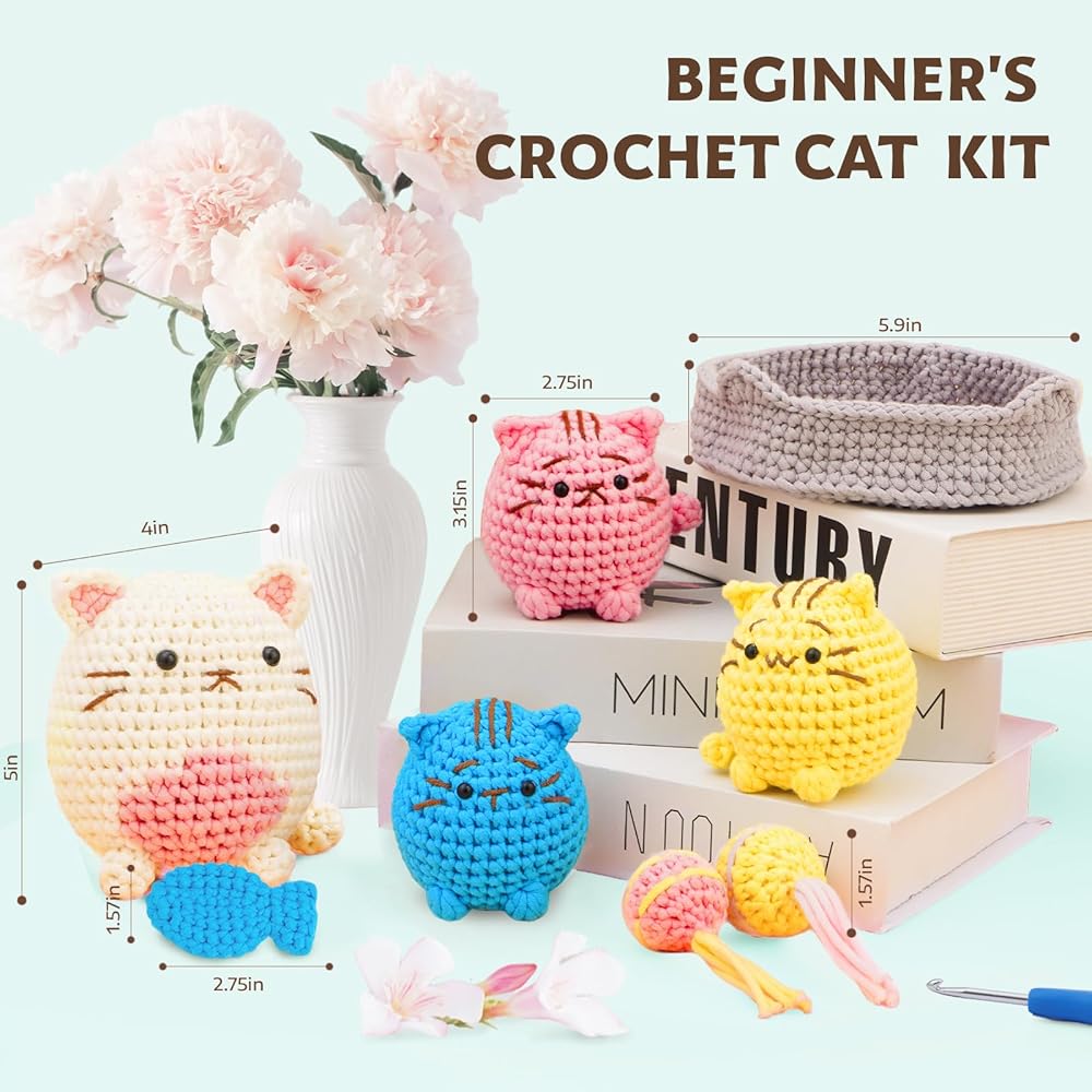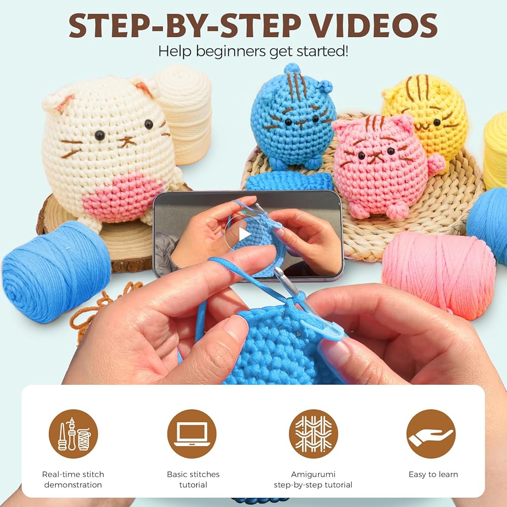 All-In-One Crochet Kit:Our Crochet kit for beginners equipped with everything you need to start: EASY YARNS,crochet hooks, Stuffing, sewing needles, eyes, marker buckles, crochet cat pattern and beginner's basic crochet manual,perfect for beginner crochet kits;