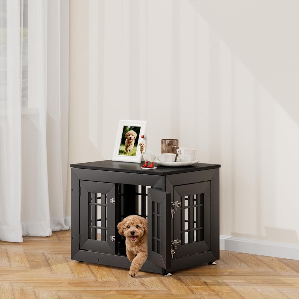 【Double Doors Design】The dog kennel furniture has a front door and a side door, your pet will go in and out easily with double doors. The double-doors design can adapt to more different space environments. You can decide whether to open the front door or the side door according to your needs.