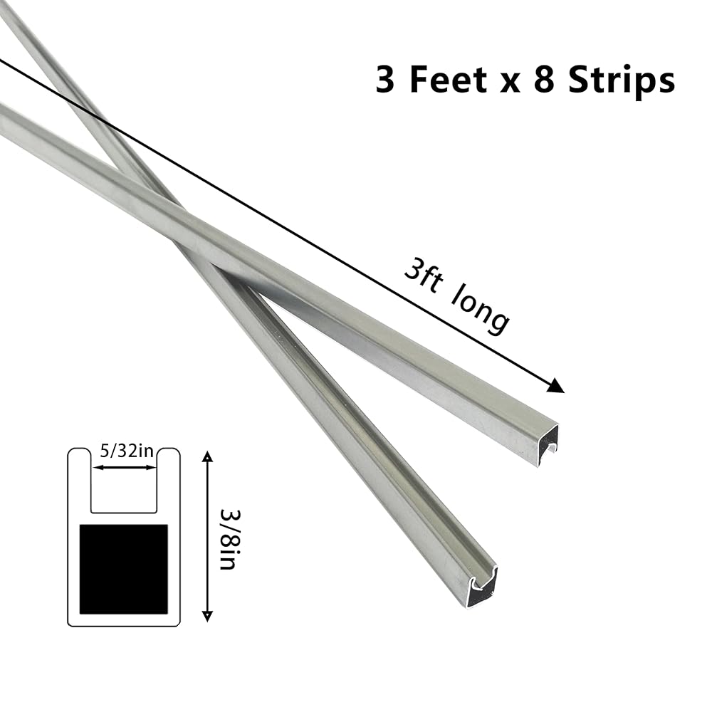 - Dimensions: face: 3/8", width: 1/4", channel: 5/32", depth: 3/16", length: 3ft x 12 strips.