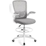 [Ergonomic Desk Chairs]: The drafting office chair features a curved backrest that conforms to the natural curve of your spine. Plus, the adjustable lumbar support can be adjusted within a 2-inch range to suit people of different heights. Enjoy a comfortable experience and remain refreshed even after prolonged periods of sitting.