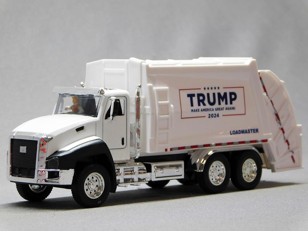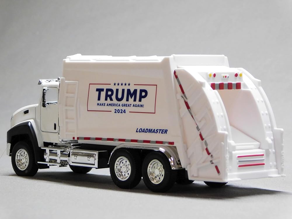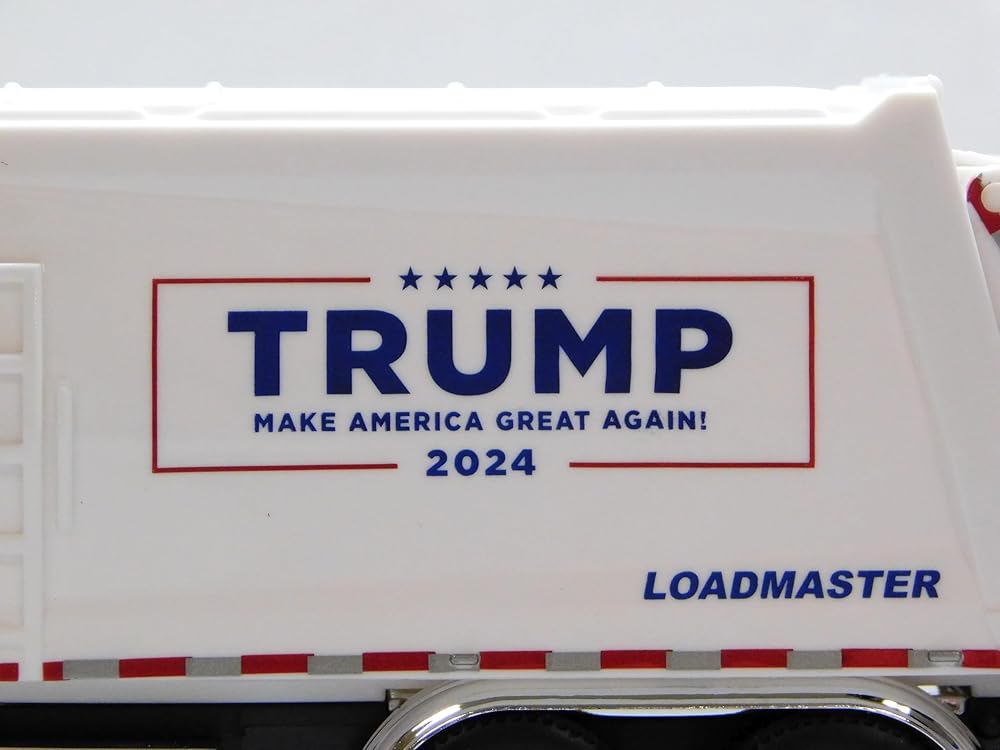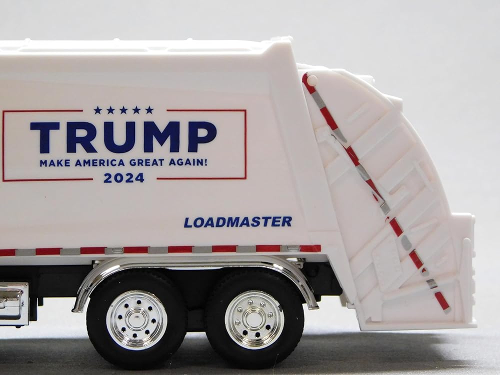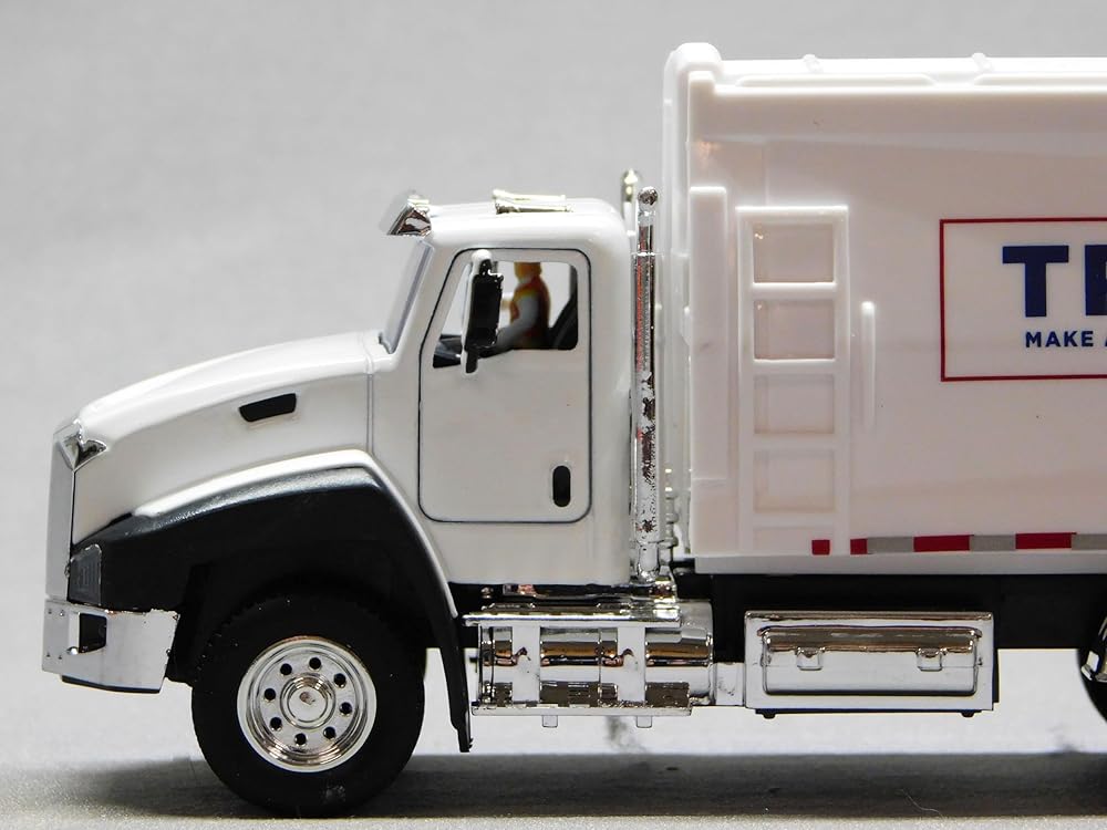 MTH: 30-50119 RailKing Donald J. Trump Garbage Truck w/ Lights & Sounds O Gauge - 1:50 Scale These highly detailed models are a step up in quality from our previous die-cast Roadster Series and will make a great addition to any O Gauge model railroad. The truck features flashing lights, self-propulsion (roll back feature), and a clip of Donald Trump speaking at a news conference. Features: Die-Cast/ABS Construction Fully Assembled Fully Painted Trump Figure In Passenger Seat Flashing Headlights Self-propulsion Movement News Conference Audio Clip of Trump Speaking 1:50 Scale