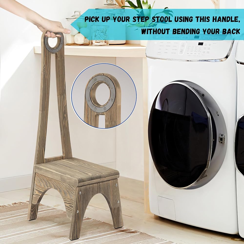 ◆ Besuerte Farmhouse Wood Step stool for adults with Tall Handle, a simple yet practical solution for your everyday needs.