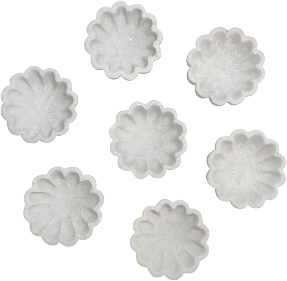 • Every marble bowl which we make will be unique in respect of shape and color. The lines and spots in marble are natural and add a unique feature to each product. As it is all handmade, so every piece will have unique carving of its own which is not be considered as any kind of imperfection.