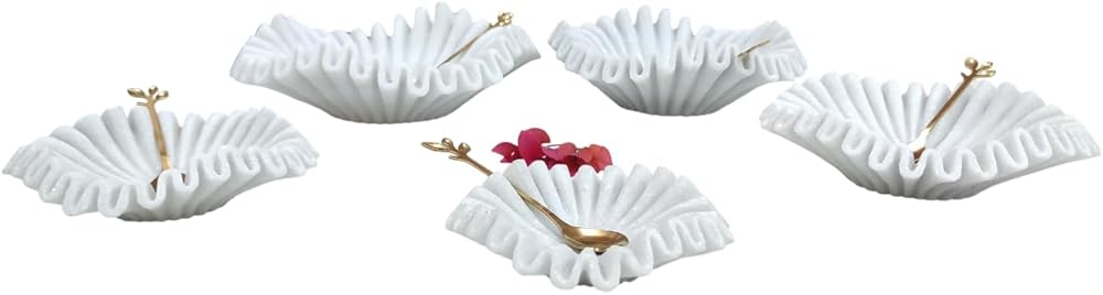 Decorative Bowls for Home Decor | Marble Bowl | Large Decorative Bowl | Marble Fruit Bowl | Scalloped Bowl | Stone Bowl | Decorative Fluted Bowl | Marble Scalloped Bowl (2 piece of 5 Inches)