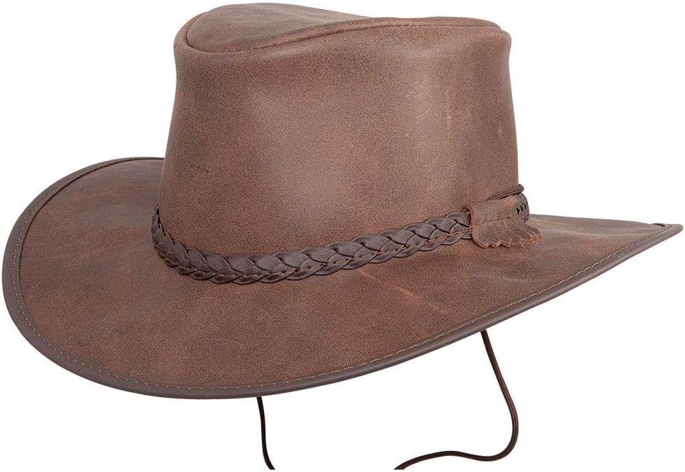 Handcrafted to Be Virtually Indestructible: Crusher Outback Leather Hat is not just for show. Designed to withstand the elements, our unique outback hats for men and women are wide-brimmed and water-resistant constructed to protect you from the scorching sun and the rain.