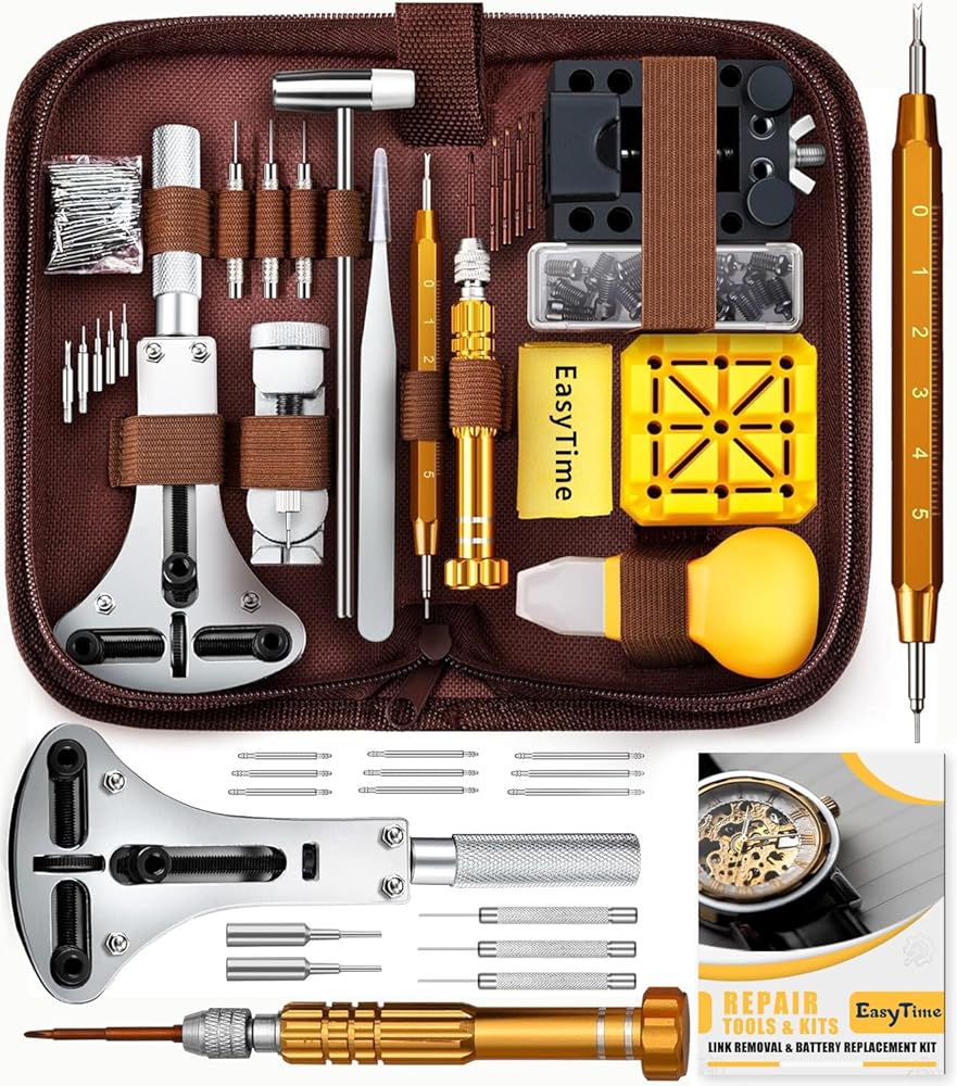 EasyTime Watch Repair Kit, Watch Link Removal Tool, Watch Band Adjustment, Including Watch Back Case Opener, Spring Bar, Operation Manual, Suitable for Battery Replacement and Strap disassemble