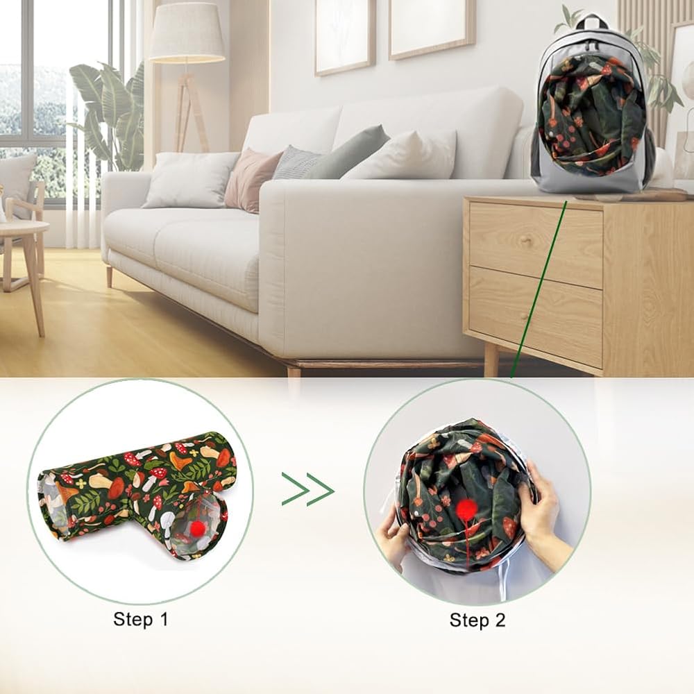 Collapsible and Portable: With a foldable design, you can carry or storage conveniently, take the play tunnel with you anywhere, your pets never get bored.