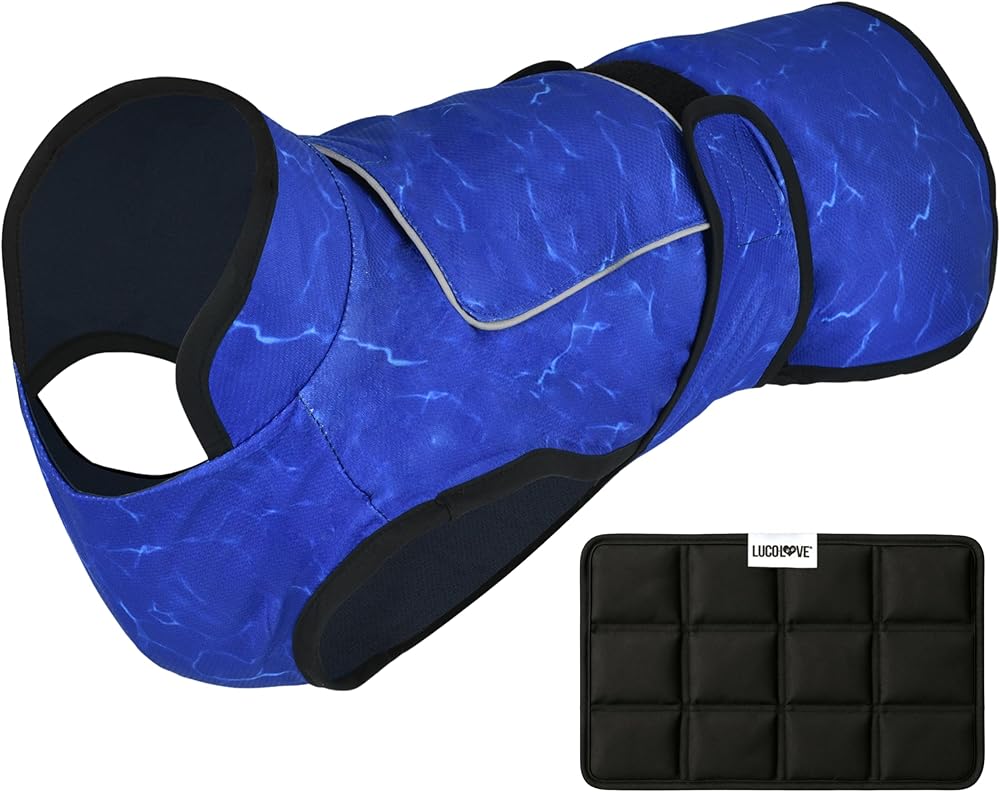Sizes and Styles for Every Dog: Available in six sizes from XS to 2XL, this dog cooling vest with ice pack is made to fit dogs of all shapes and sizes. Choose from Lucolove's exclusive prints—Blue Aqua Ripple or Pink Floral—designed in-house for a standout look that's both functional and stylish.