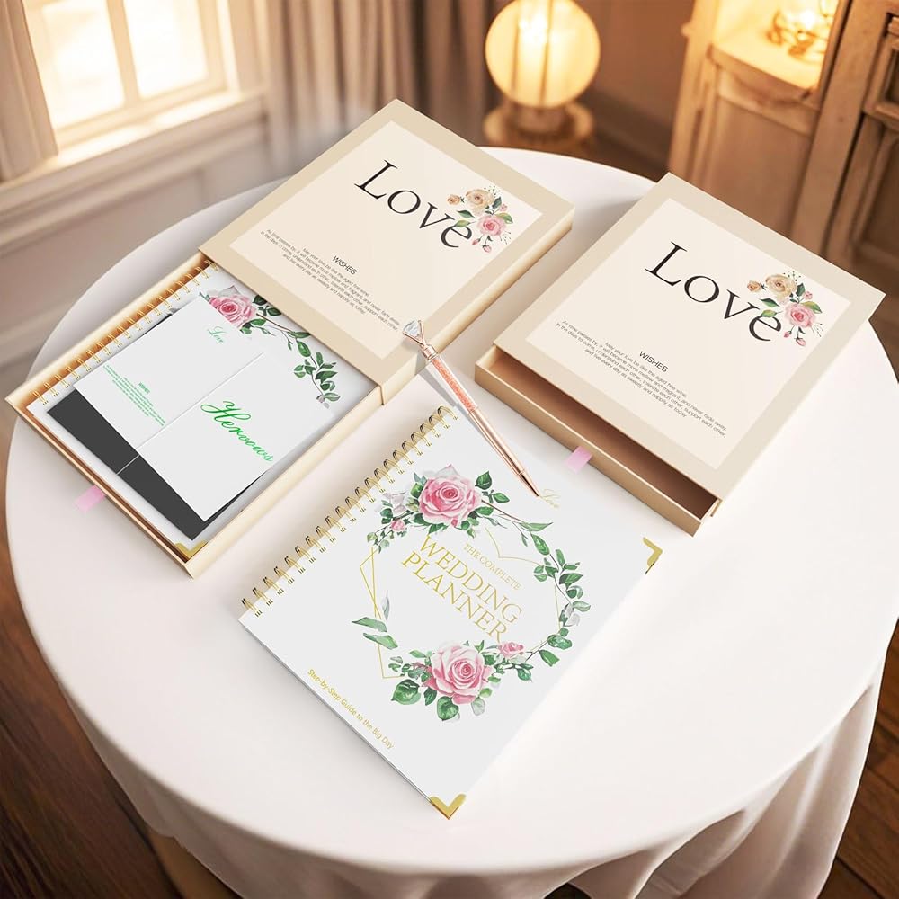 Wedding Planner Book and Organizer Set with His and Hers Vow Cards & Pen, Wedding Planner for Bride with Checklists, Budget Tracker & Calendar, Unique Engagement Gifts for Newly Engaged Couples