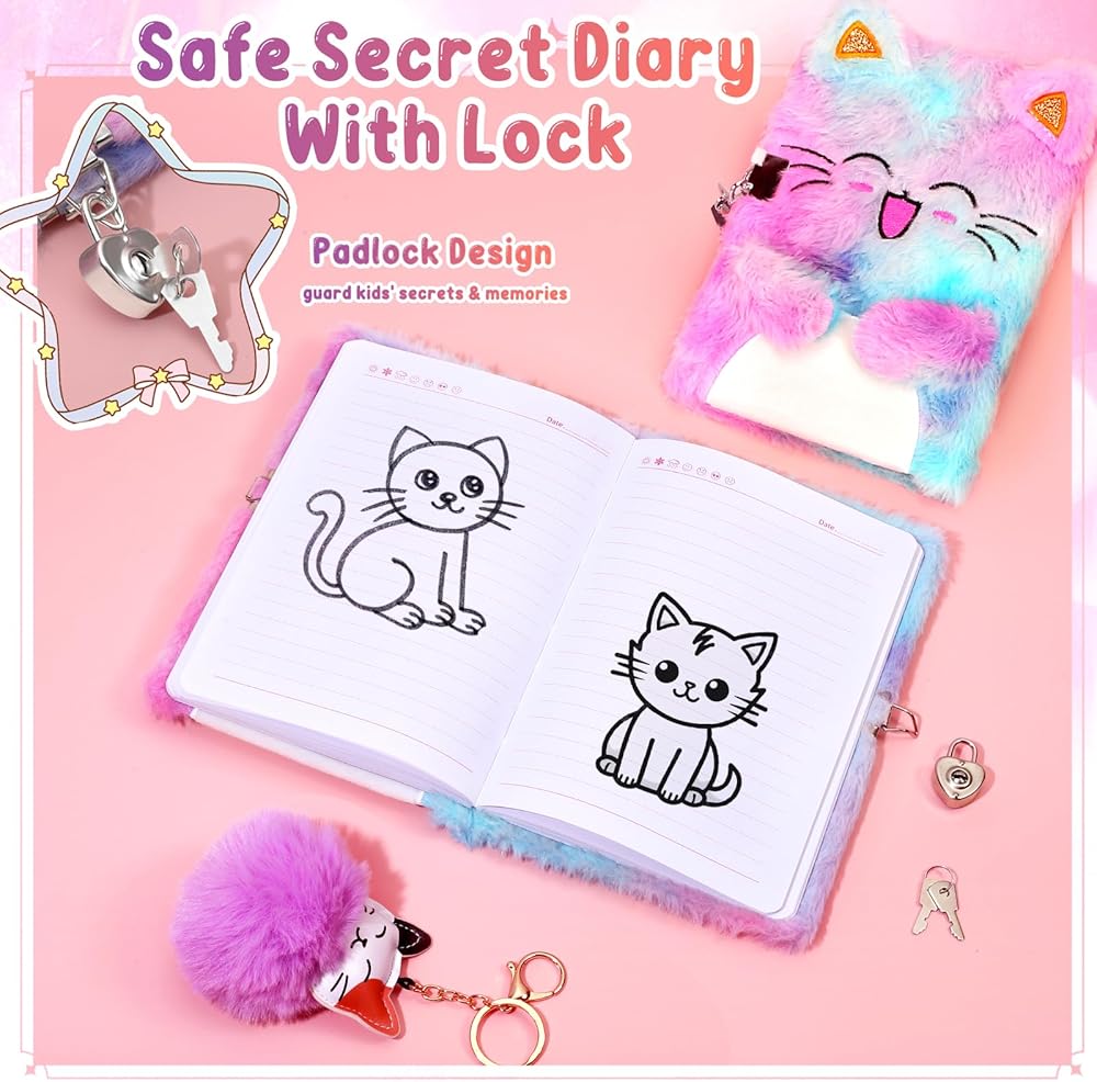 【Secret Diary With Locked】- Equipped with a metal lock and two keys, The cute cat diary will safeguard your thoughts, dreams, secrets, and emotions. A perfect secret companion where you can be truly honest with yourself.