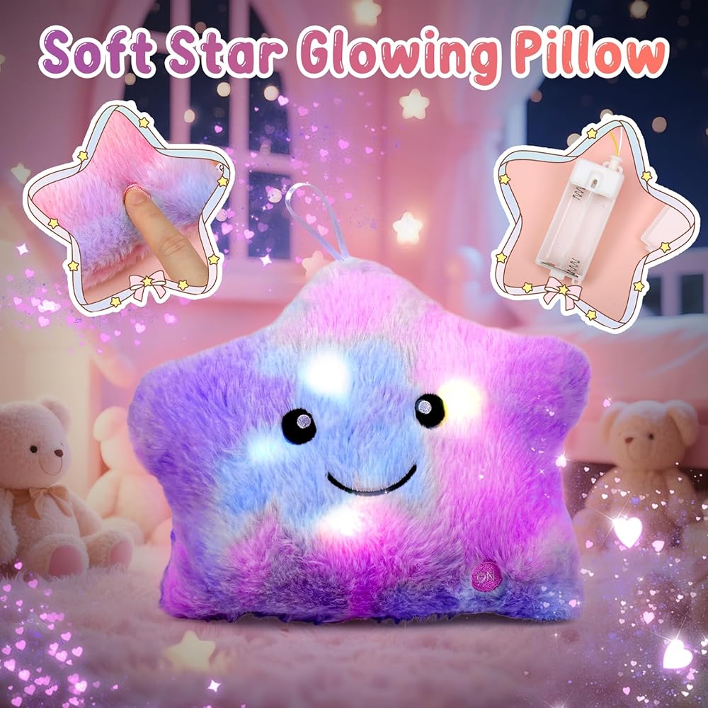 【Star Pillow & Eye Mask For Sweet Sleep】-The soft plush star pillow and cat eye mask creat a cozy and comforting sleep environment, Perfect for helping your girls feel safe and relax at bedtime.