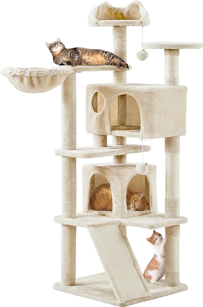 PREMIUM COMFORT & SAFETY - Crafted with soft, skin-friendly plush and durable materials, every level is a cozy retreat. Reinforced particle boards and natural sisal posts ensure safety and longevity, even for the most energetic claw-sharpening sessions