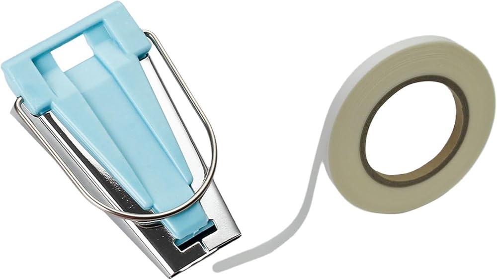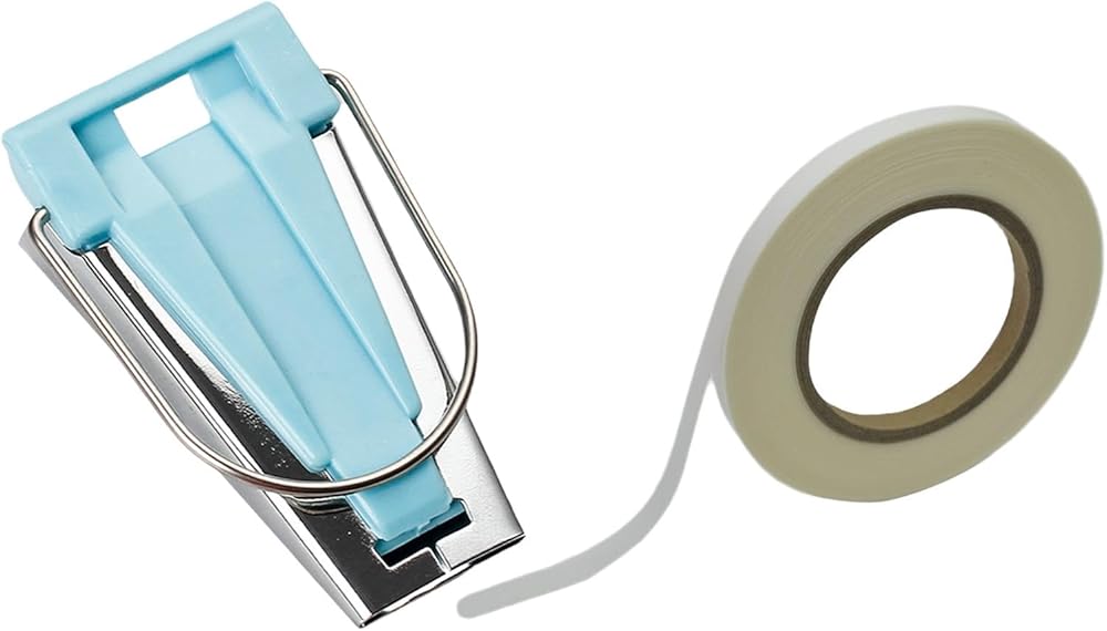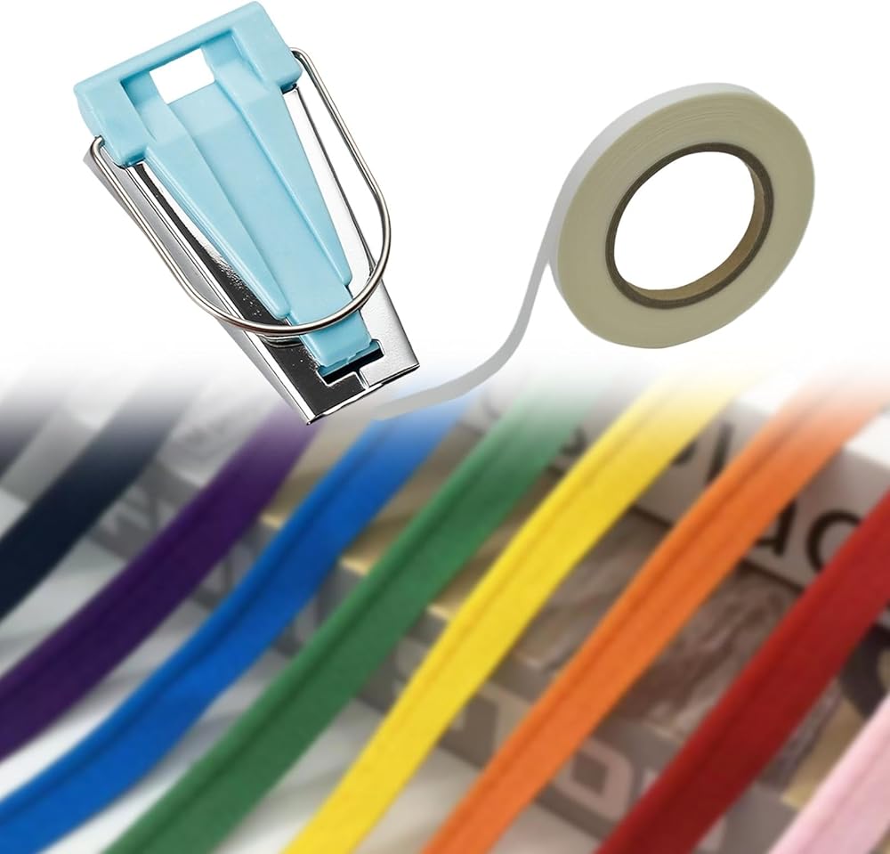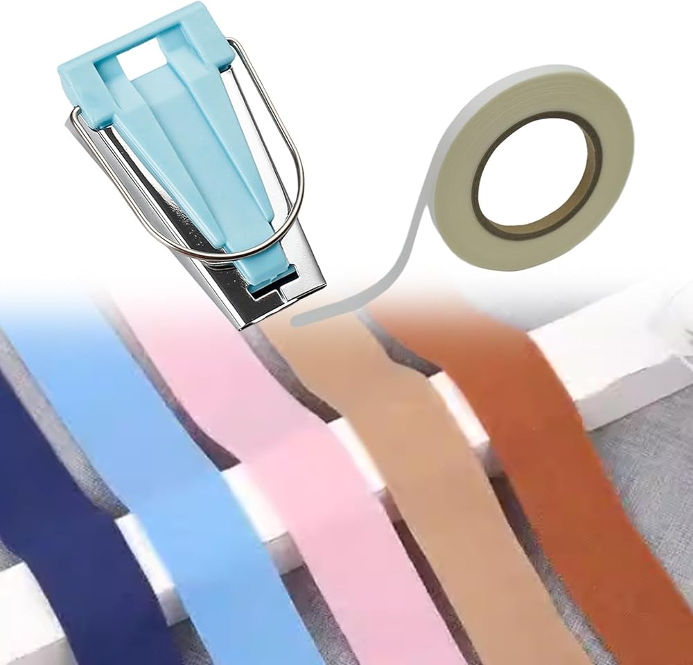 - 【Easy to Use】: This combo set includes a Fusible web and an tape maker tool. To use, simply cut a fabric strip twice the width of the tool, trim the front end into a triangle, and insert it into the wider end of the tool. Place the double-sided tape in the groove on the back of the tool, pull out from the narrow end, smoothen it out, and iron with ease