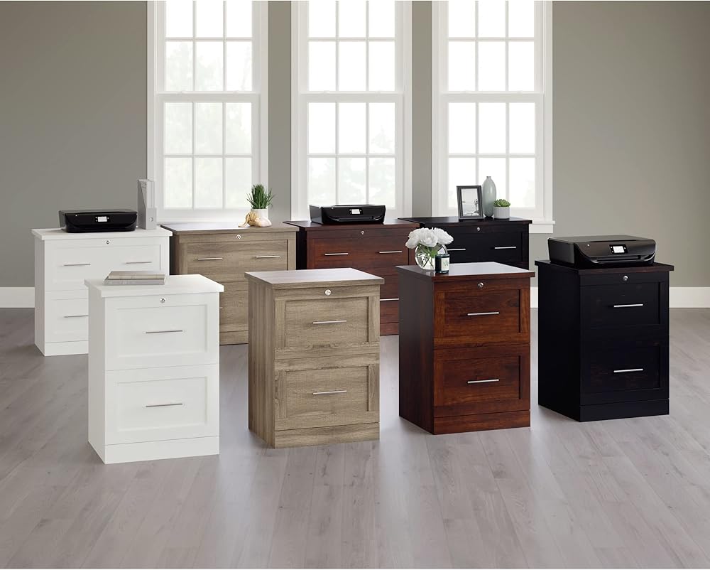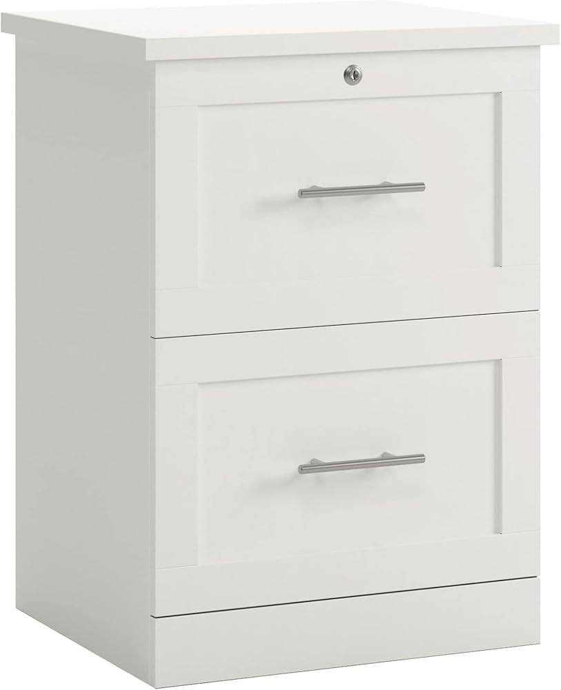 • Keeping your important documents organized and secure is easy with the Realspace 2-Drawer Vertical File Cabinet. This file unit is made from strong and durable engineered wood and features a locking top drawer that is ideal for sensitive documents. The cabinet offers ball bearings to help the drawers glide smoothly, and the full-extension drawer design means you'll easily be able to reach files in the back.