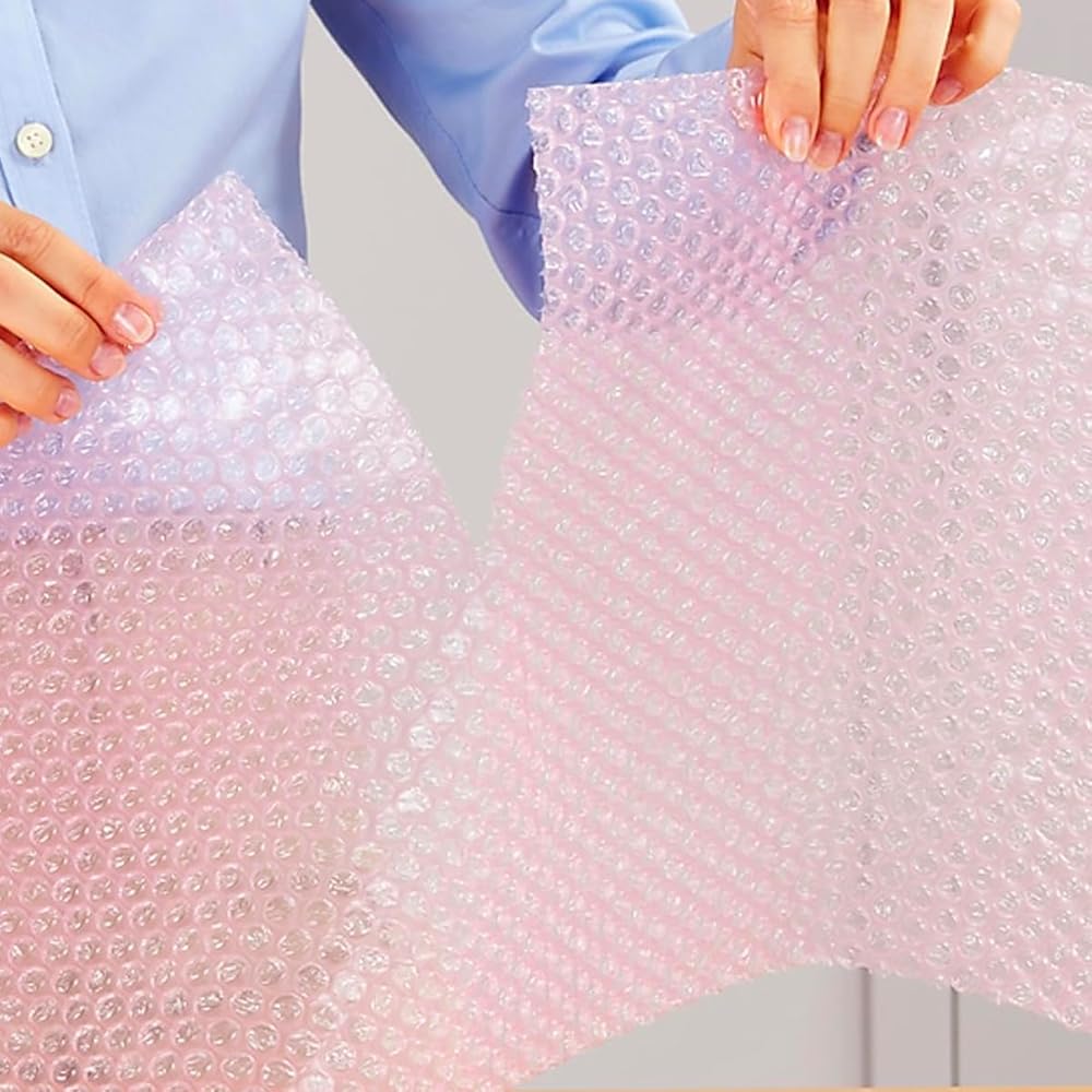 100 ft Anti-static Small Bubble Perforated Every 12" Cushioning Wrap for Moving & Shipping Bubble Packing Wrap for Extra Protection Clear Bubble Roll Moving Supplies (Pink)
