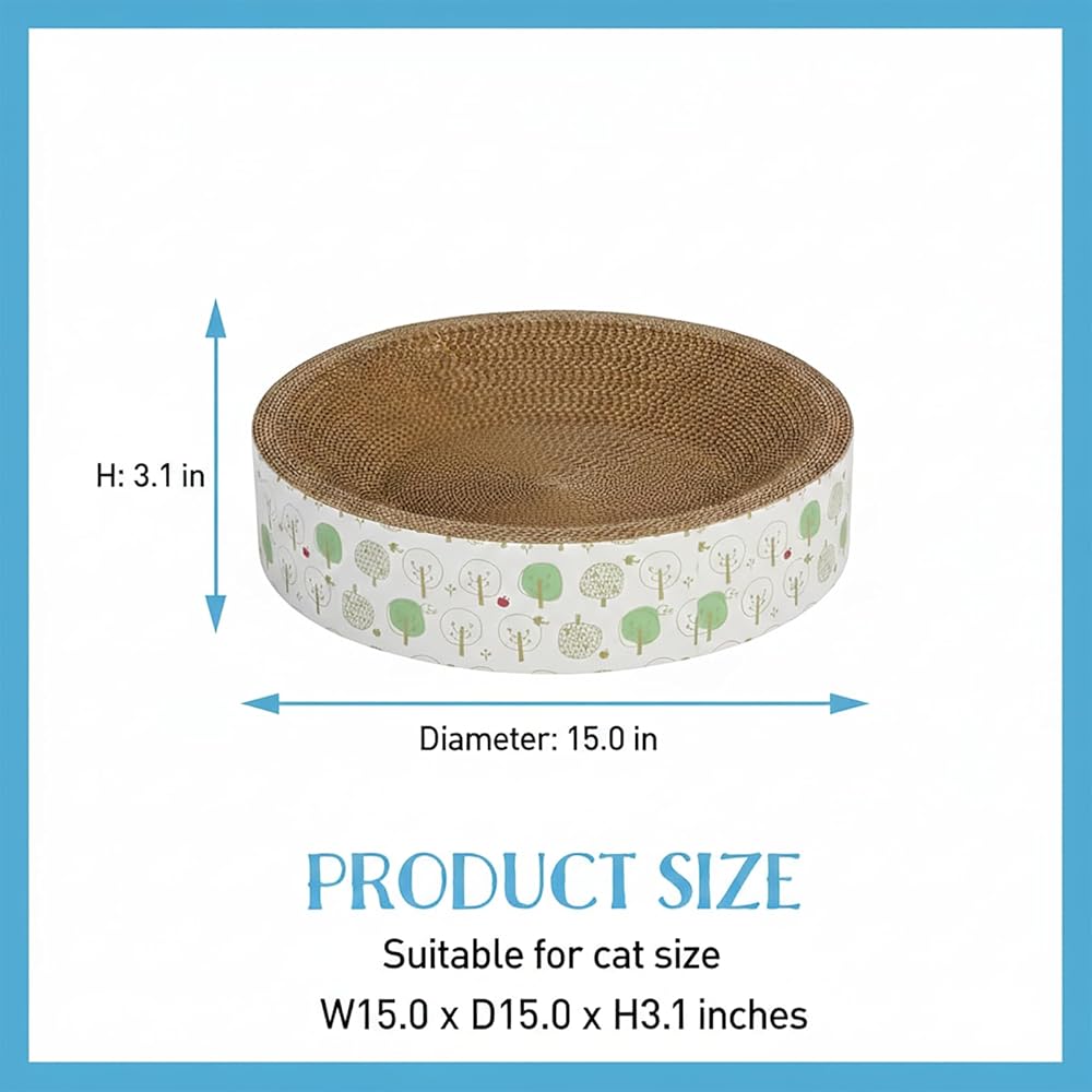 A round, comfy bed-like scratching post for your cat.Made with high-density cardboard for satisfying scratching.