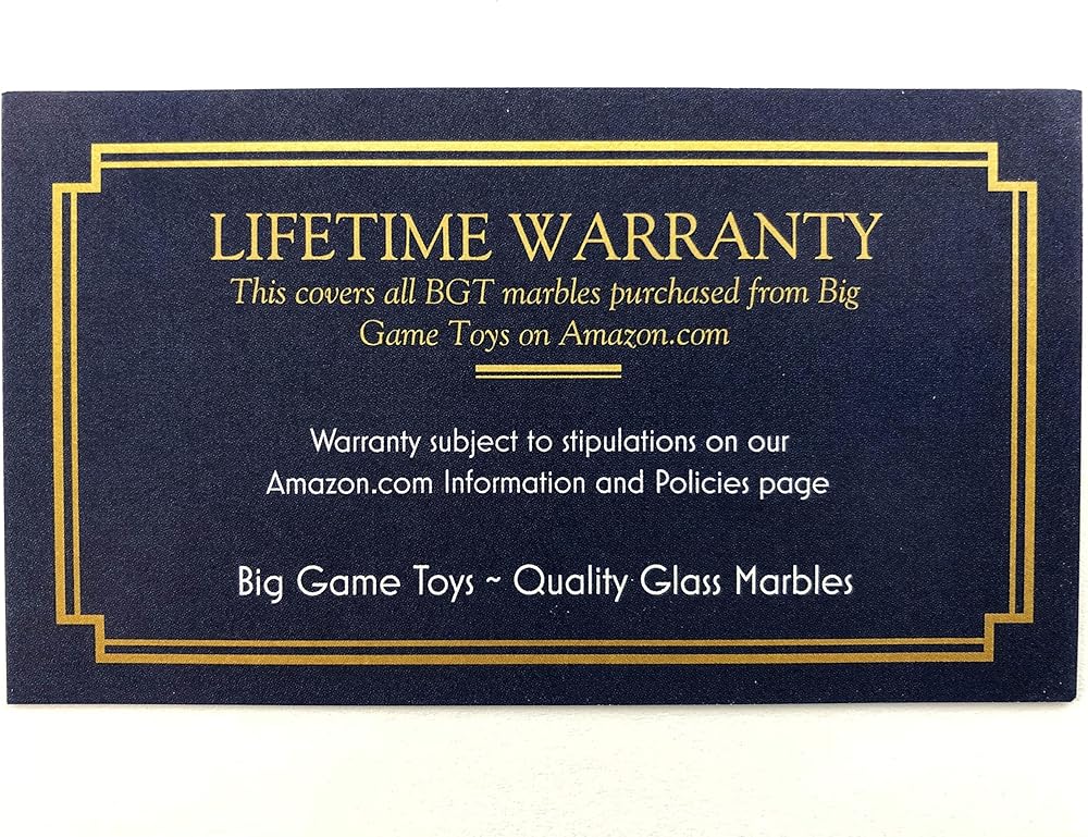 LIFETIME WARRANTY CERTIFICATE: These marbles come with a Lifetime Warranty Certificate. This certificate is included with each sale. Please refer to images of what you will be sent.