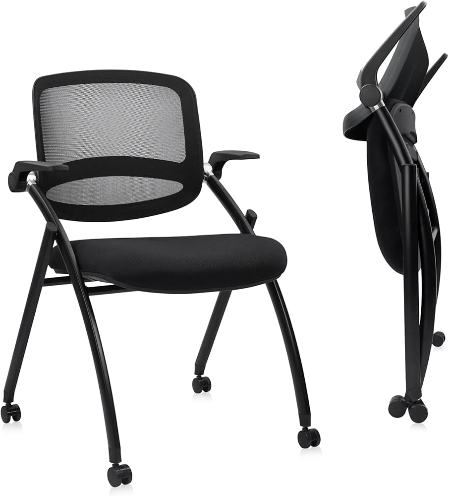 【ERGONOMIC DESIGN】Ergonomic folding chair. The stackable chairs curved backrest conforms to the natural curve of the spine and reduces stress. The conference chairs utilizes 360-degree removable wheels to easily move and adjust the chair's position. The rolling chair designed with silent rollers that are convenient for daily work needs.