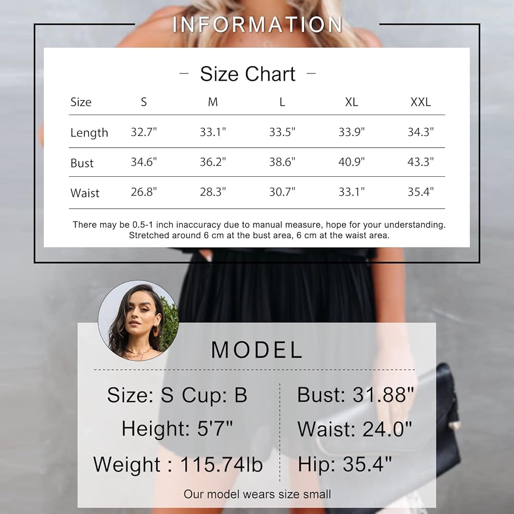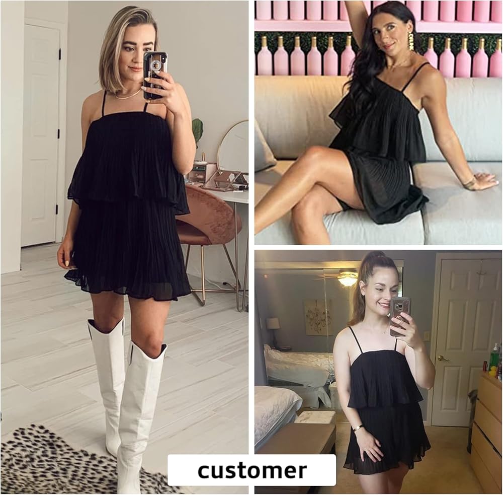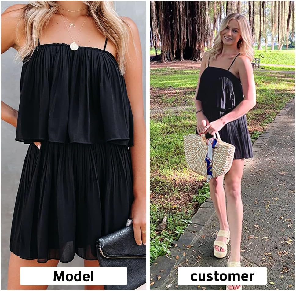 - Design: Adjustable spaghetti straps, solid color, pleated, elastic waist, ruffle hem, simple and plain.