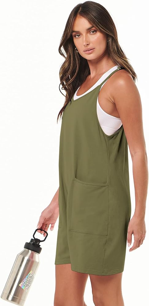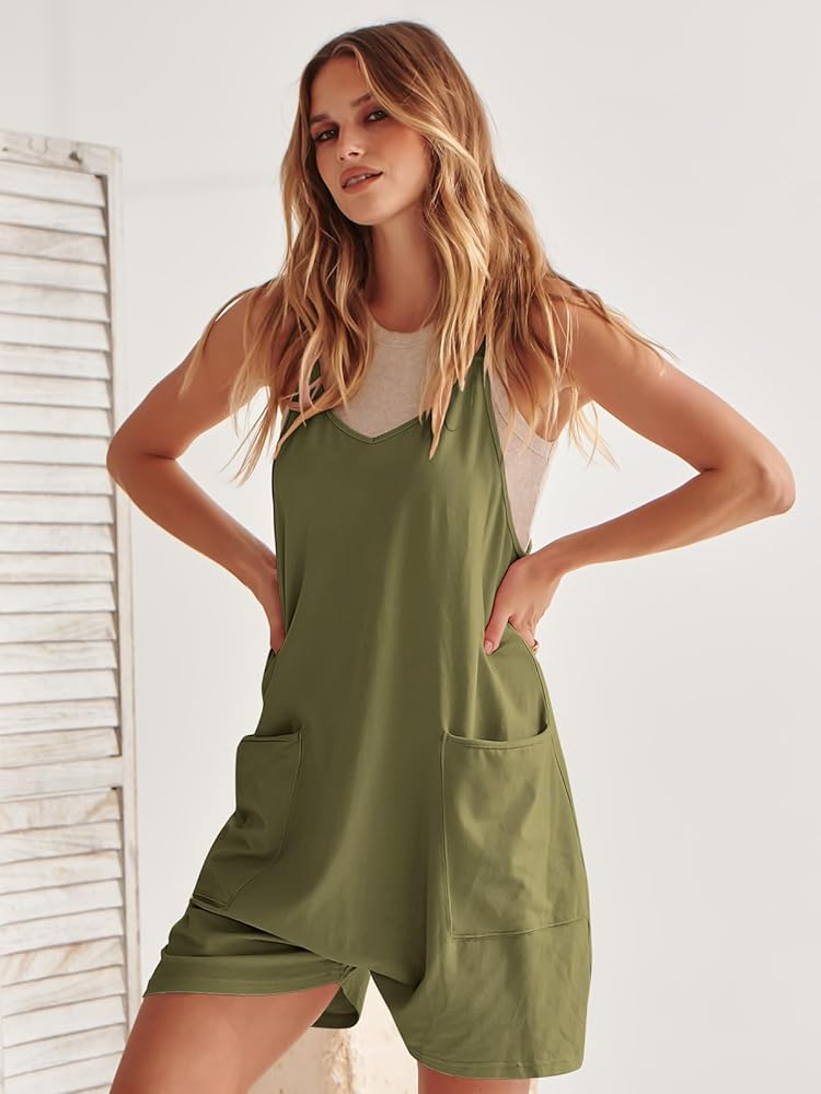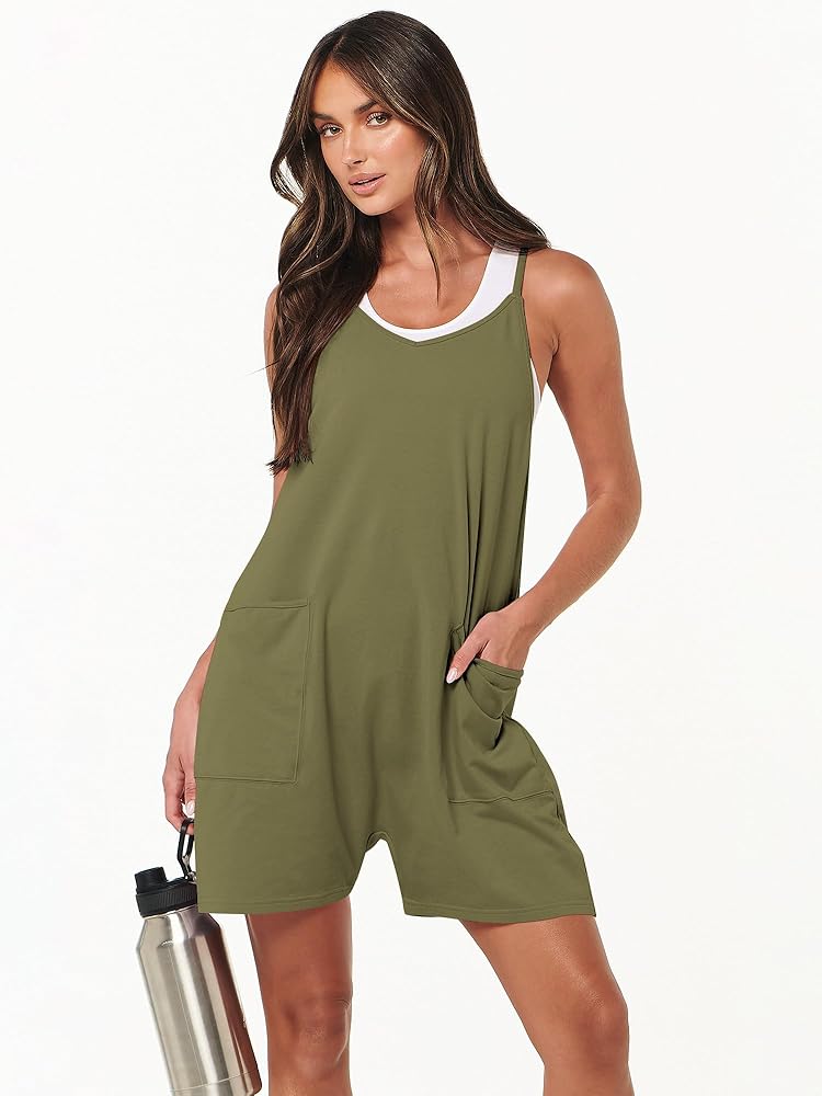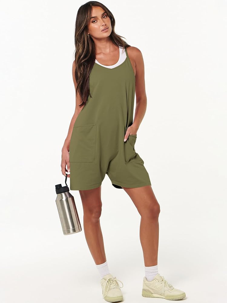 Features - Casual romper with sleeveless,adjustable spaghetti strap,pockets,loose fit,v neck,racerback style,casual style will be your best choice in summer!
