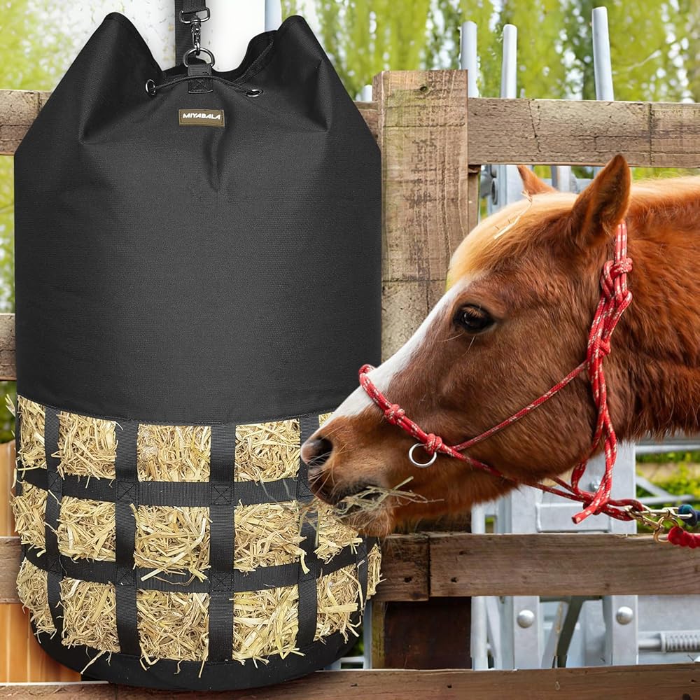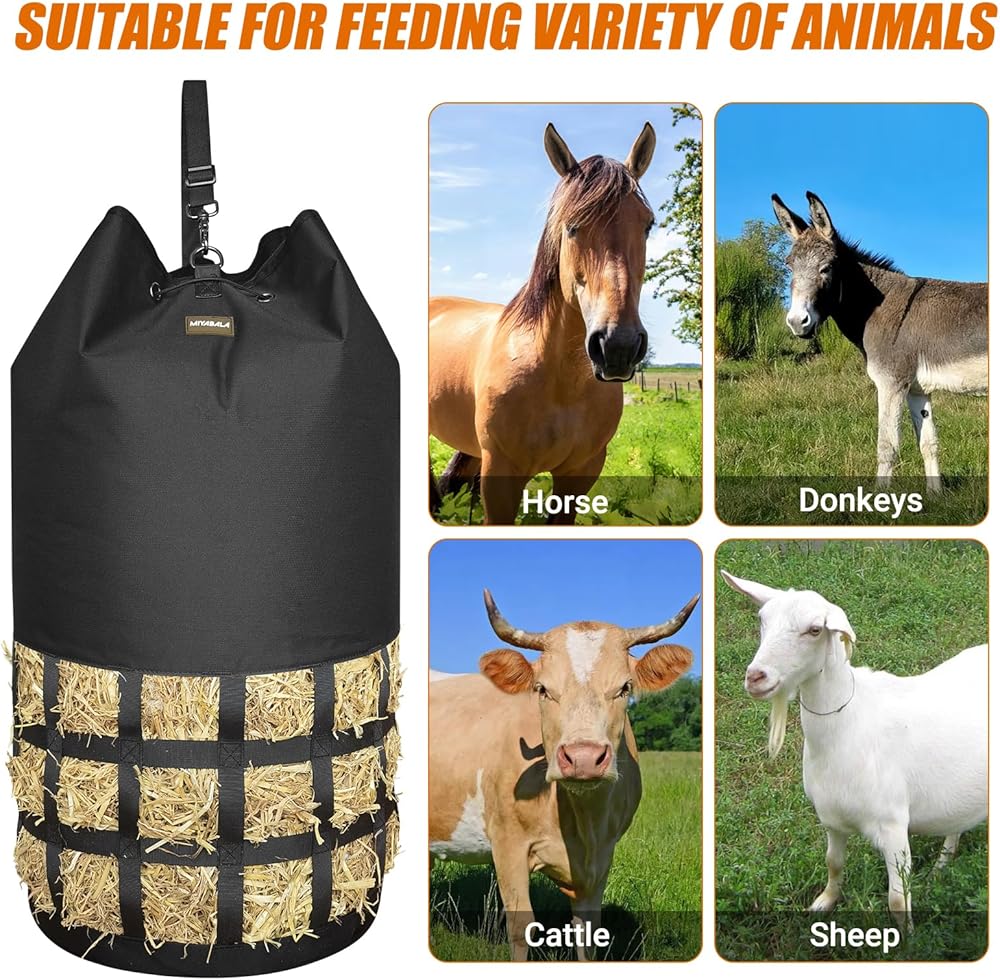 Hay Bags for Horses, Innovative Full-Circle Hay Nets Design Large Slow Feed Hay Bags for Goats,Sheep,Donkey, Large Opening with Drawstring and Adjustable Strap for Easy Filling and Hanging