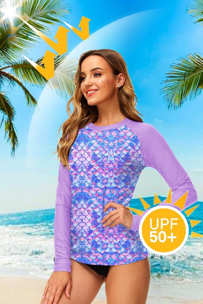 ☀️Rash Guard Collocation - Easy To Pairs with Any Bikini Bottoms, Swim Shorts, Tankini Bottoms, Swimming Skirts, Board Shorts, Casual Bottoms etc.